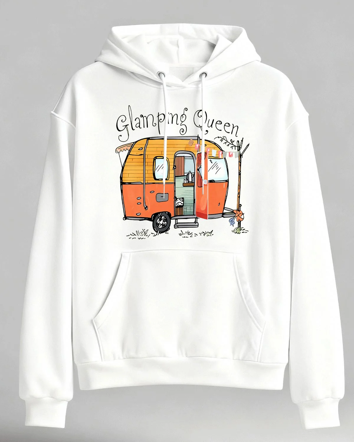 Glamping Queen Camper Cozy Graphic Hoodie for Men and Women - Casual Vintage, Long Sleeve, Soft Fabric, Comfortable Fit