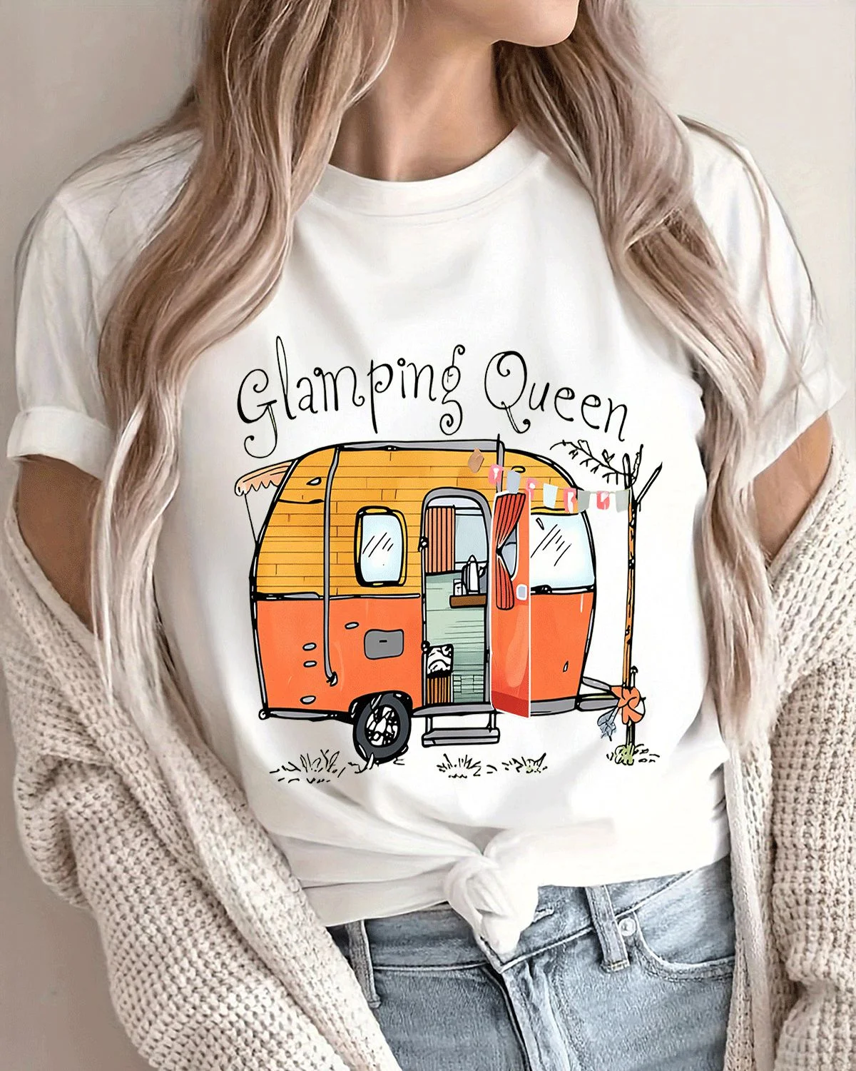 Christmas Chickens and Reindeer in Santa Hats Summer Cotton Graphic T Shirt - Funny Retro, Short Sleeve, Soft Fabric, Comfortable Fit