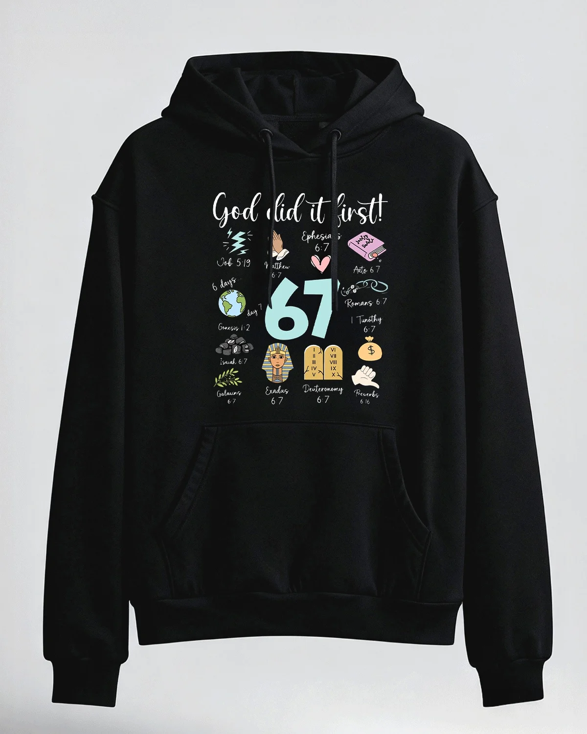 God Did It First 67 Bible Verses Cozy Cotton Graphic Hoodie-Casual Vintage,Long Sleeves,Soft Fabric,Comfortable Fit