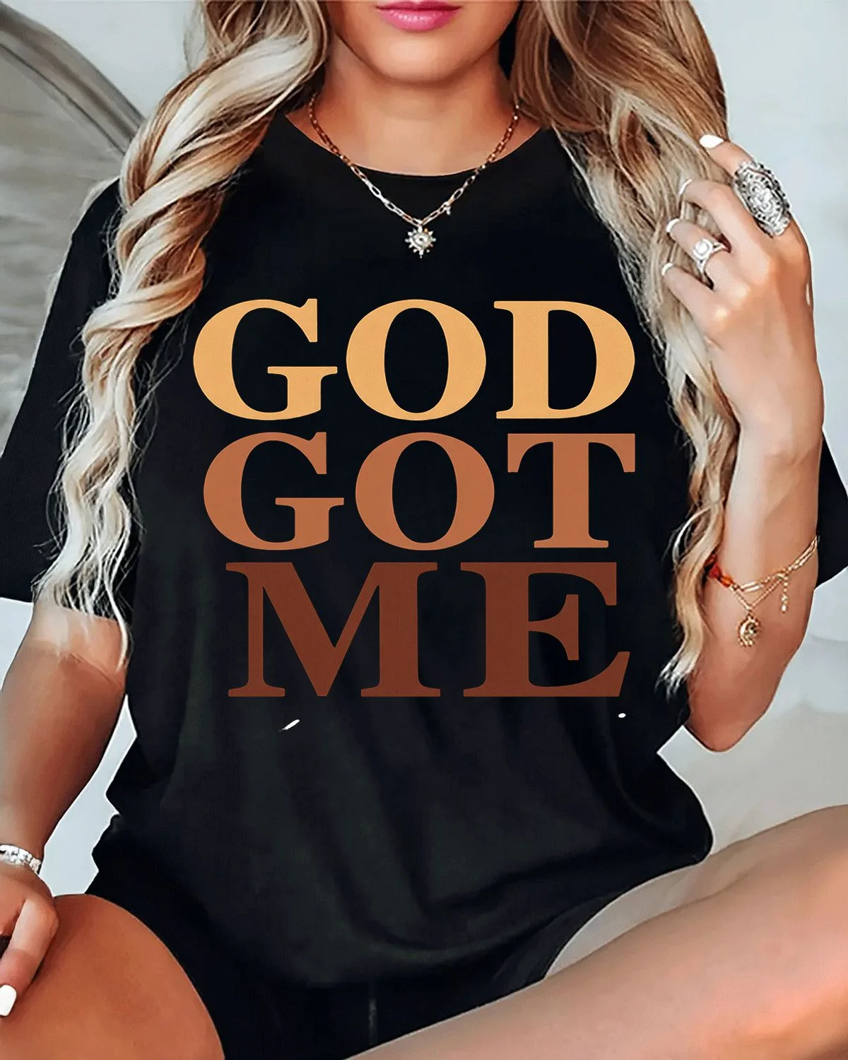 God Got Me Summer Cotton Graphic T Shirt - Casual Vintage, Short Sleeve, Soft Fabric, Comfortable Fit
