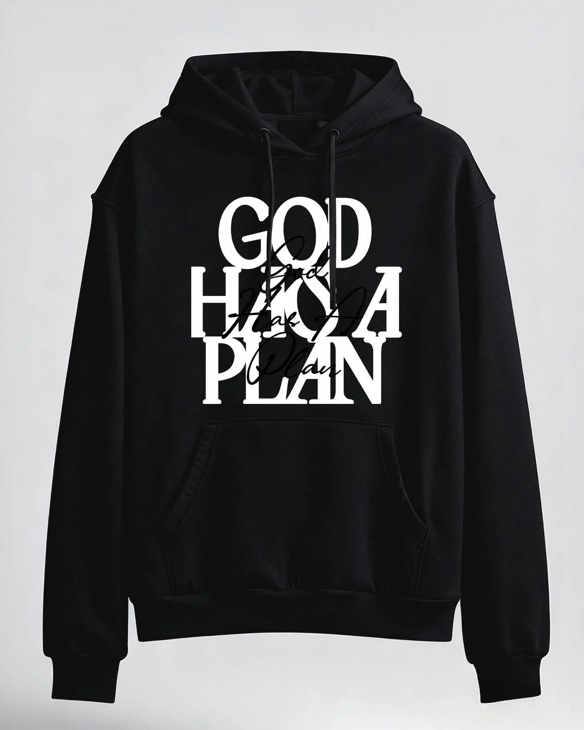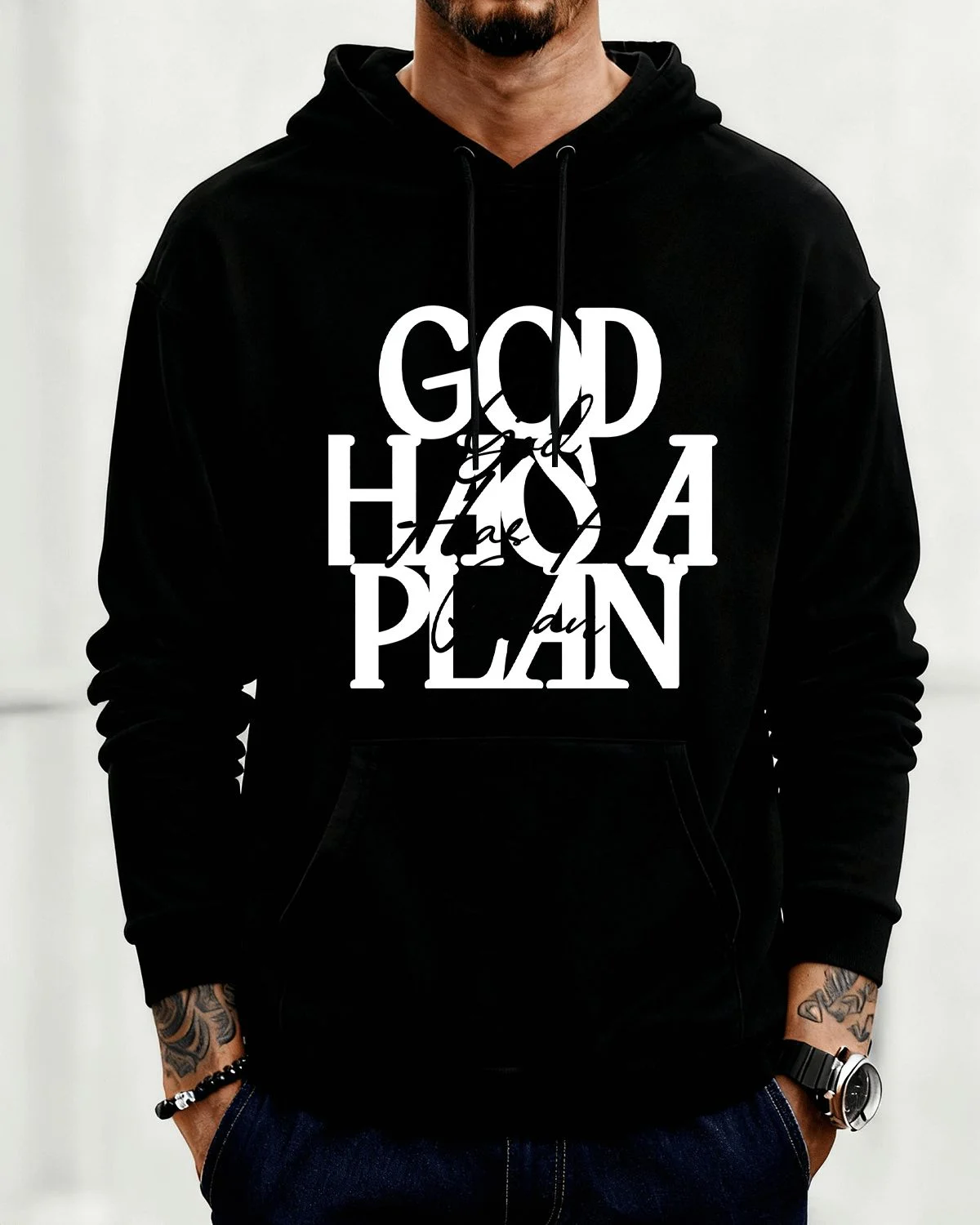God Has A Plan Cozy Cotton Graphic Hoodie with Pocket-Casual Vintage,Long Sleeve,Soft Fabric,Comfortable Fit