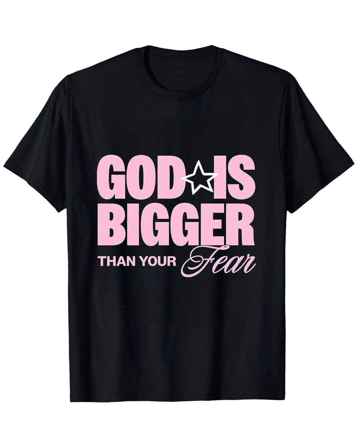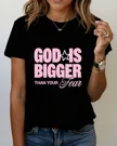 God Is Bigger Than Your Fear Summer Cotton Graphic T Shirt - Casual Vintage,Short Sleeve,Soft Fabric,Comfortable Fit