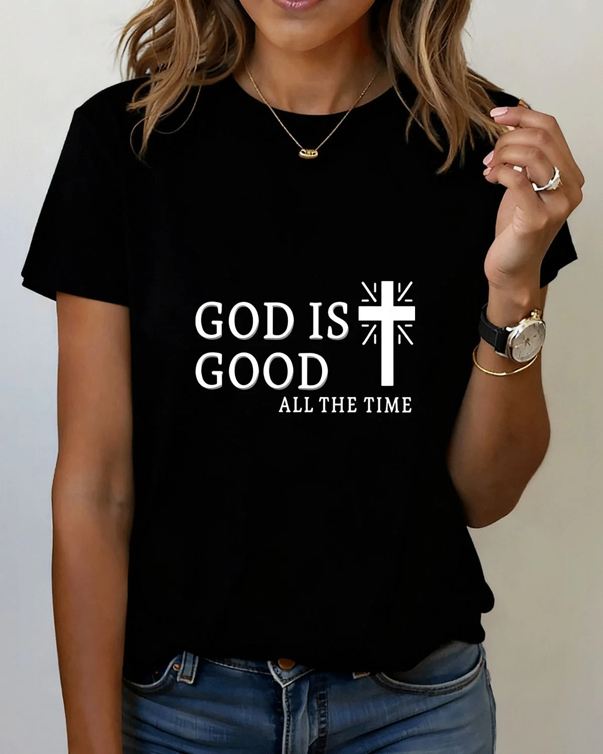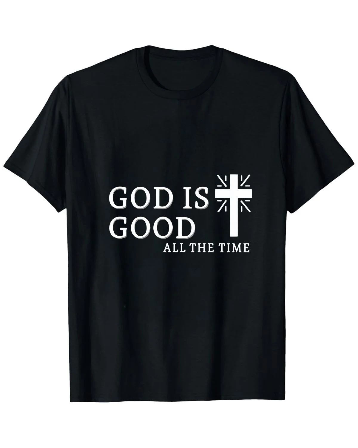 God Is Good All The Time Cross Design Summer Cotton Graphic T Shirt - Casual Vintage,Short Sleeve,Soft Fabric,Comfortable Fit