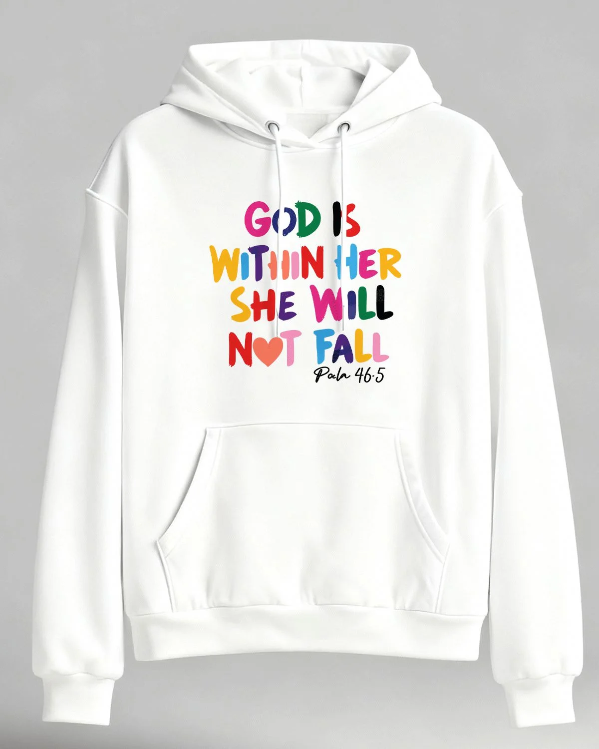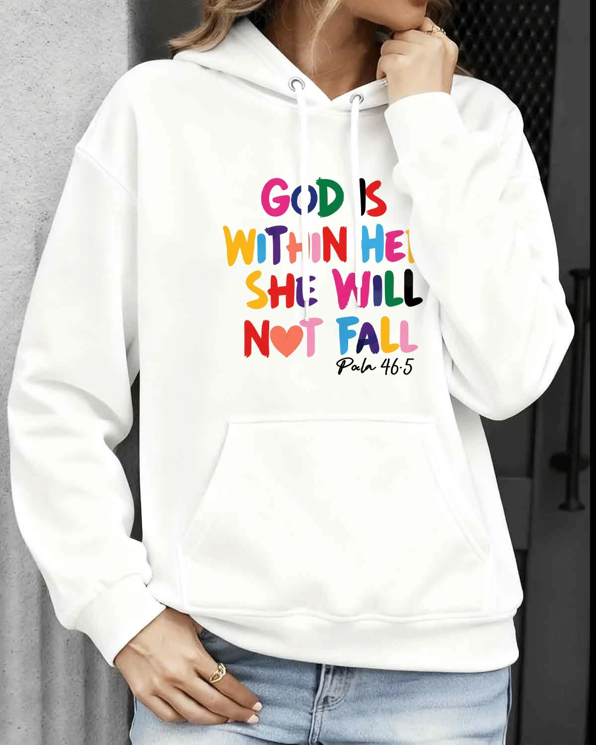 God Is Within Her She Will Not Fall Cozy Cotton Graphic Hoodie with Pocket-Casual Artistic,Long Sleeve,Soft Fabric,Comfortable Fit