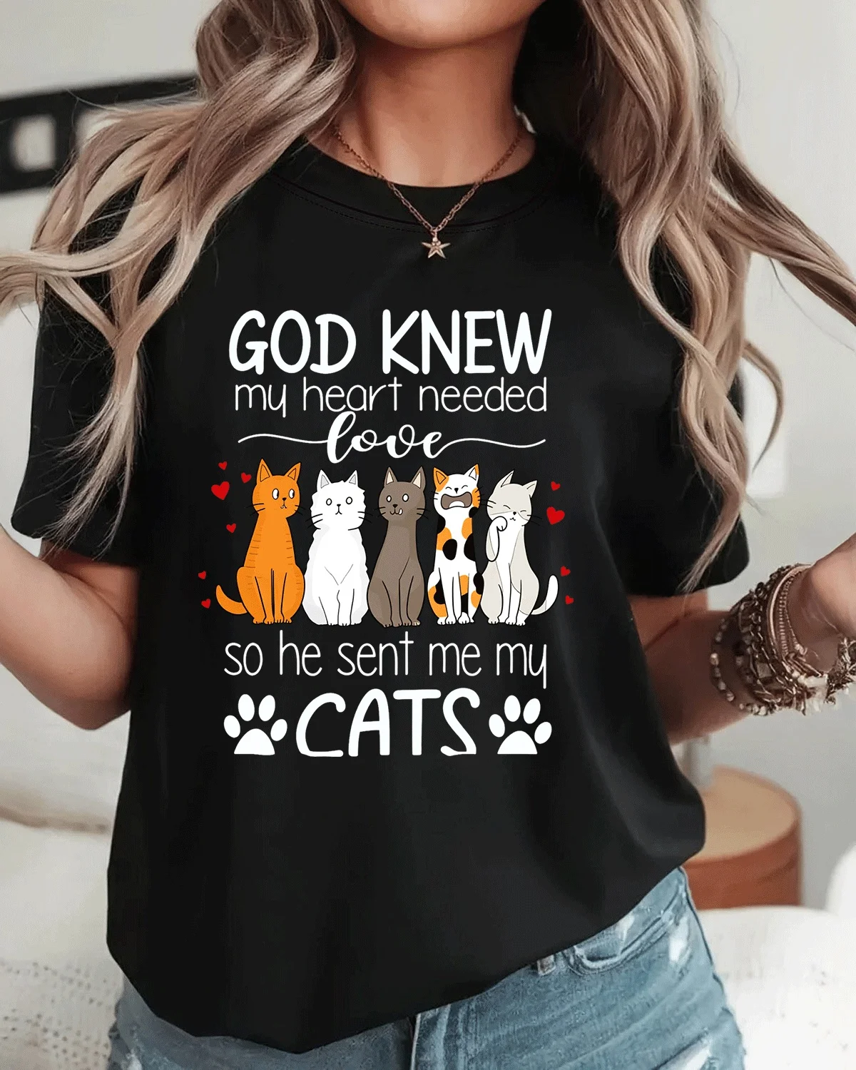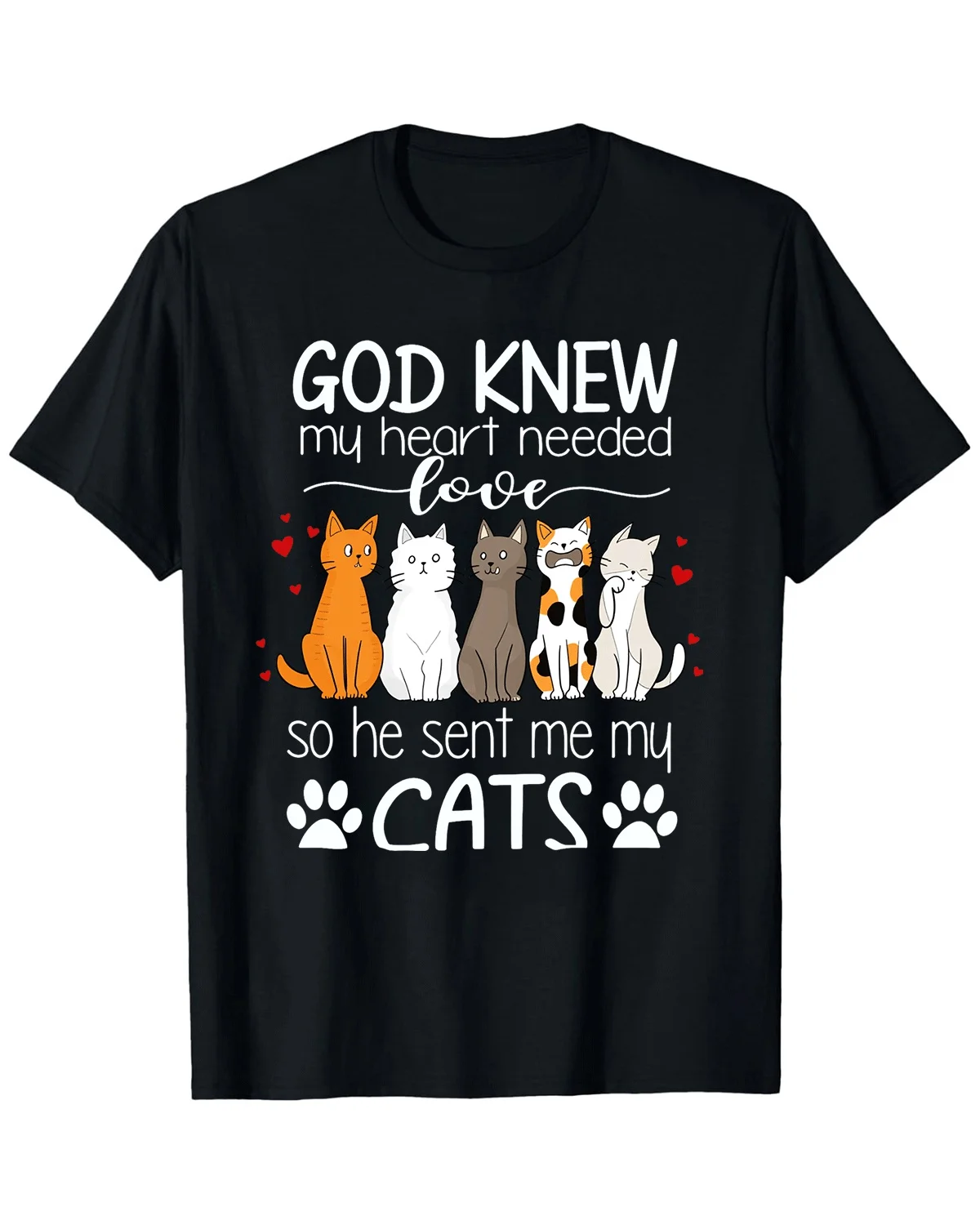 God Knew My Heart Needed Love Cats Summer Cotton Graphic T Shirt-Casual Artistic,Short Sleeve,Soft Fabric,Comfortable Fit