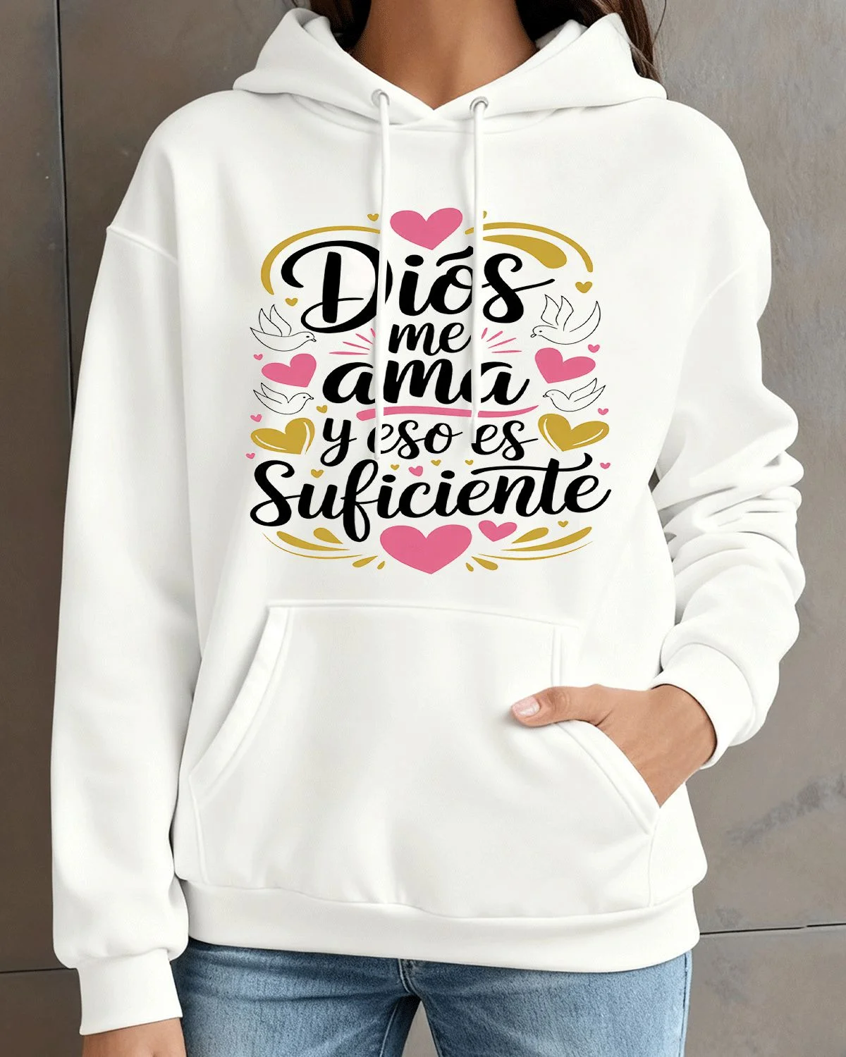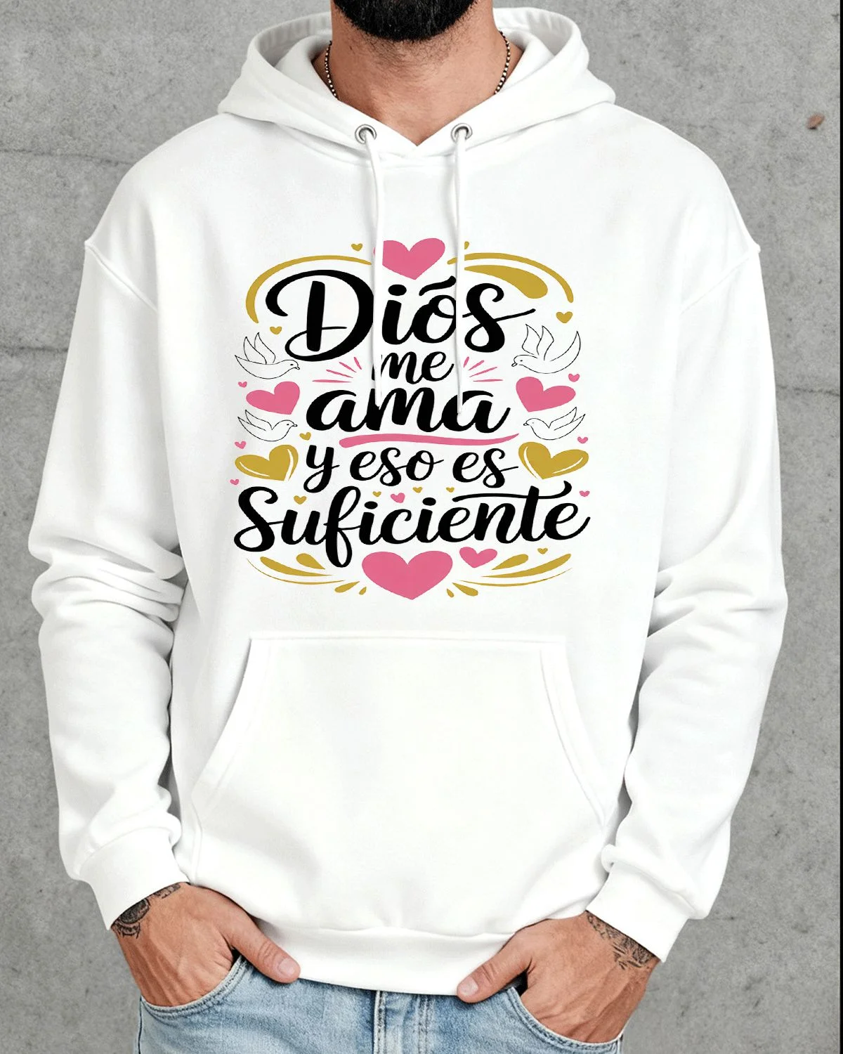 God Loves Me And That Is Enough Summer Cozy Graphic Hoodie - Casual Vintage, Long Sleeve, Soft Fabric, Comfortable Fit