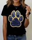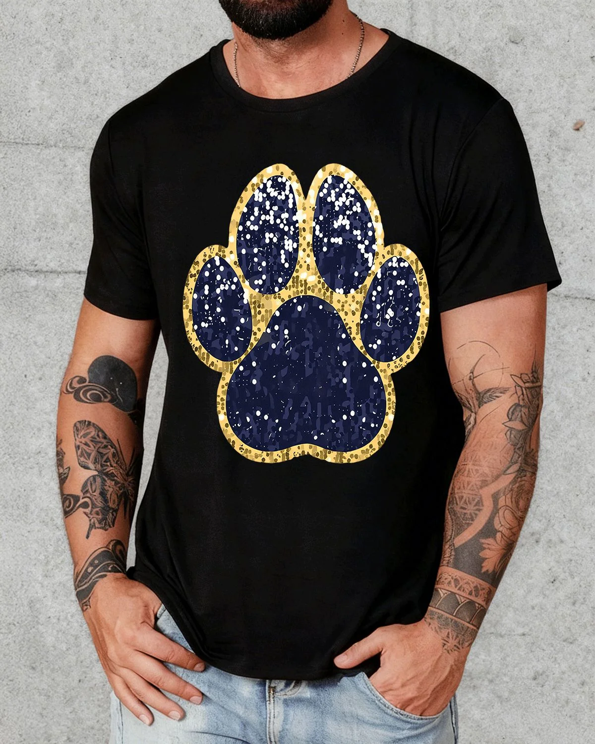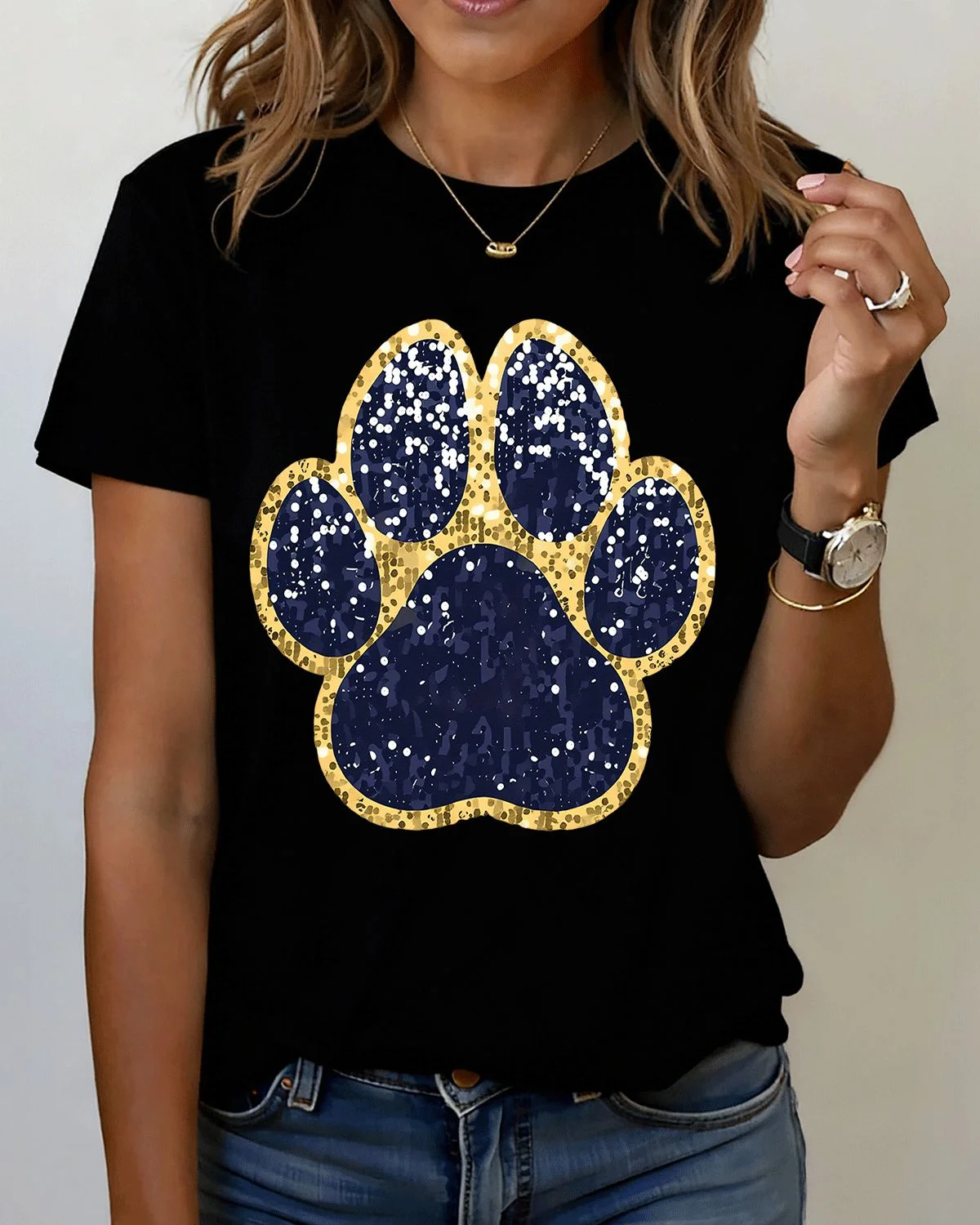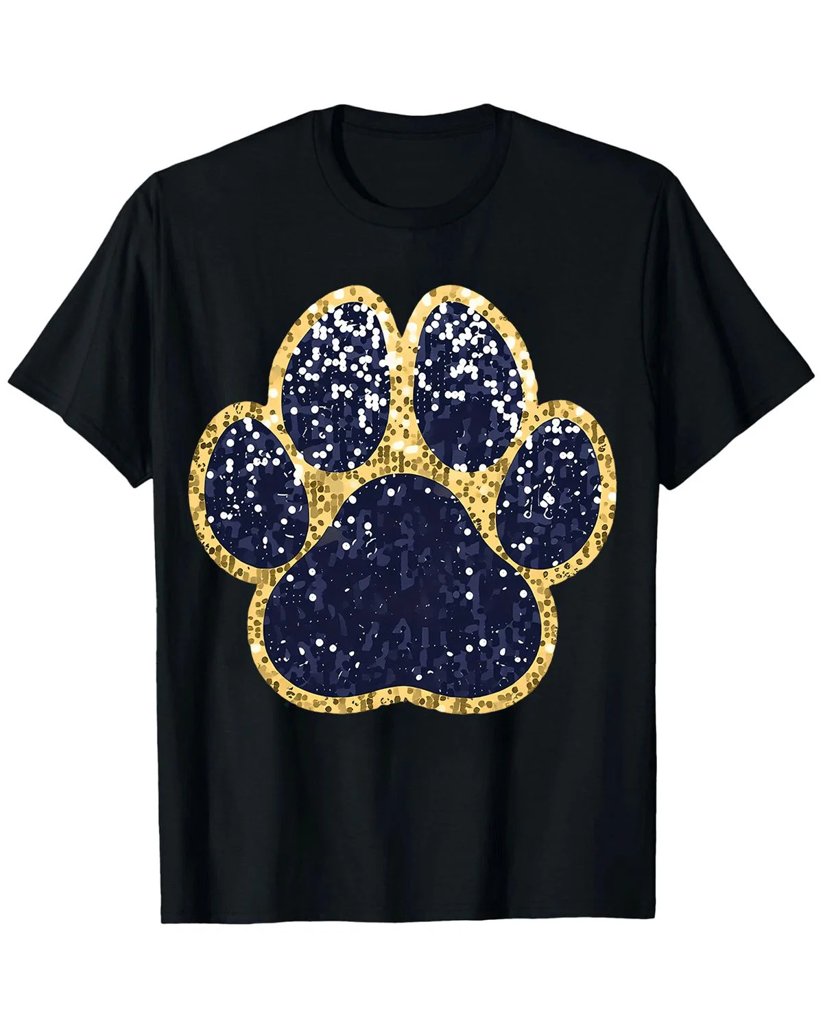 Golden Glitter Paw Print Summer Cotton Graphic T Shirt-Casual Artistic,Short Sleeve,Soft Fabric,Comfortable Fit