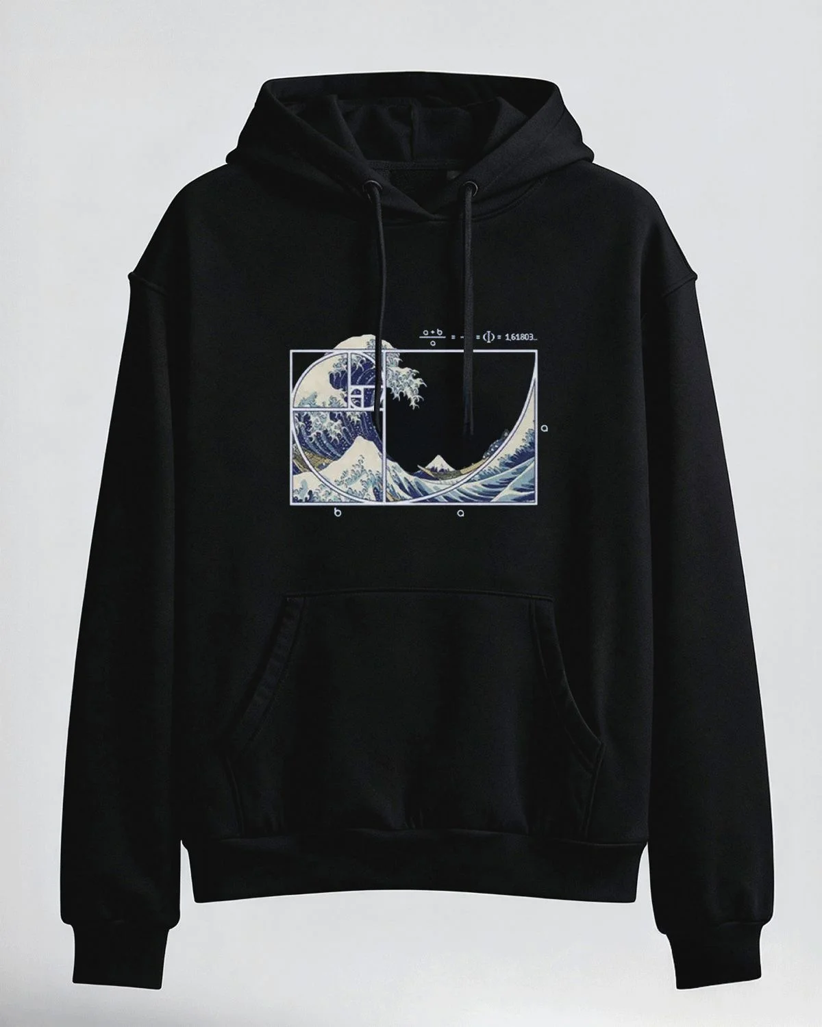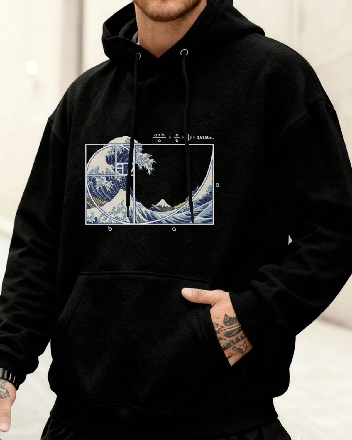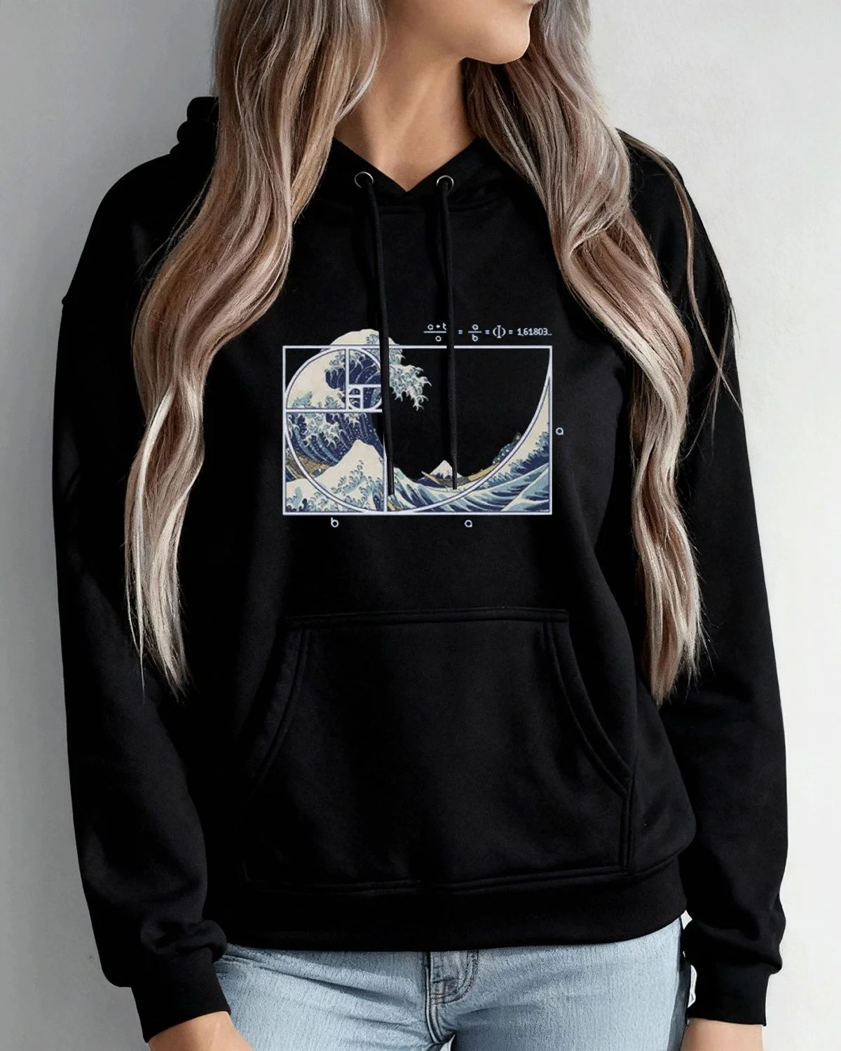 Golden Ratio Great Wave Cozy Cotton Graphic Hoodie with Pocket-Artistic Vintage,Long Sleeve,Soft Fabric,Comfortable Fit