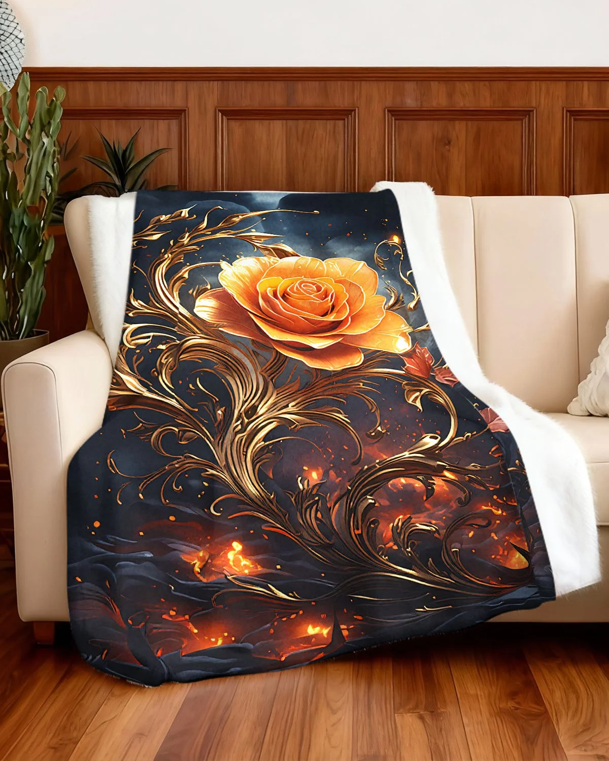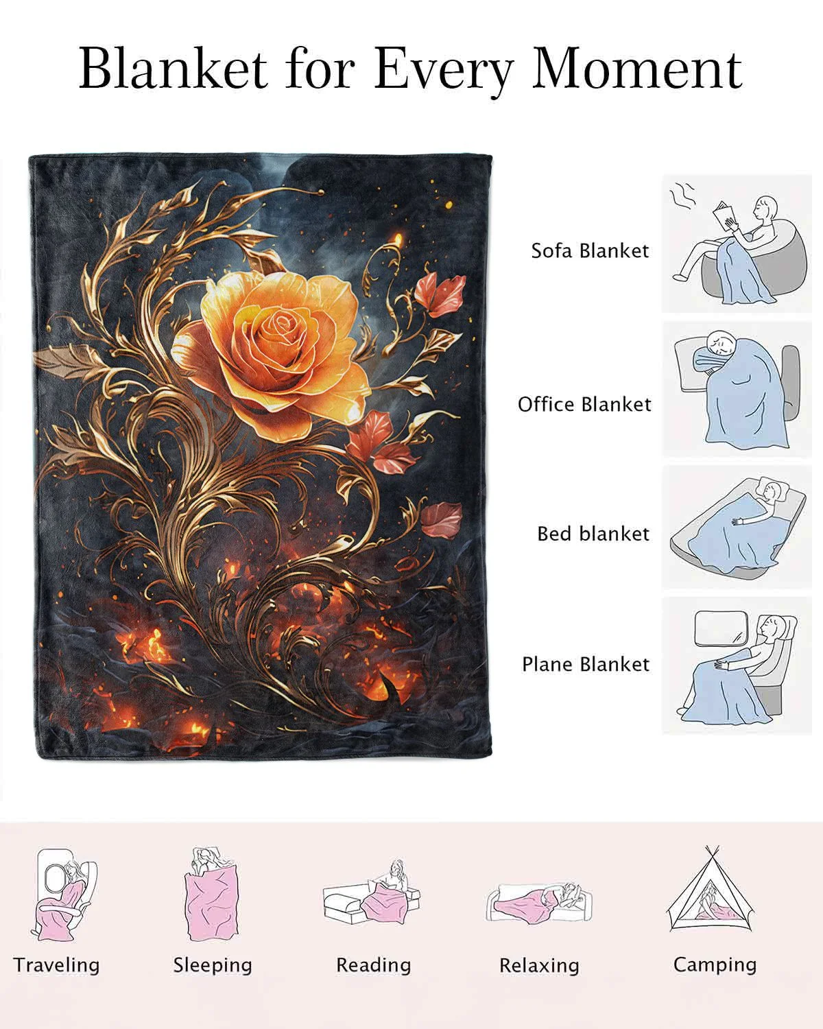 Golden Rose Love and Blessings Cozy Flannel Blanket-Elegant Classic,Super Soft,Warm,Plush,For Bed,Home Decor