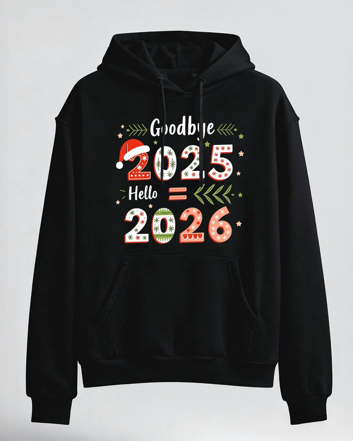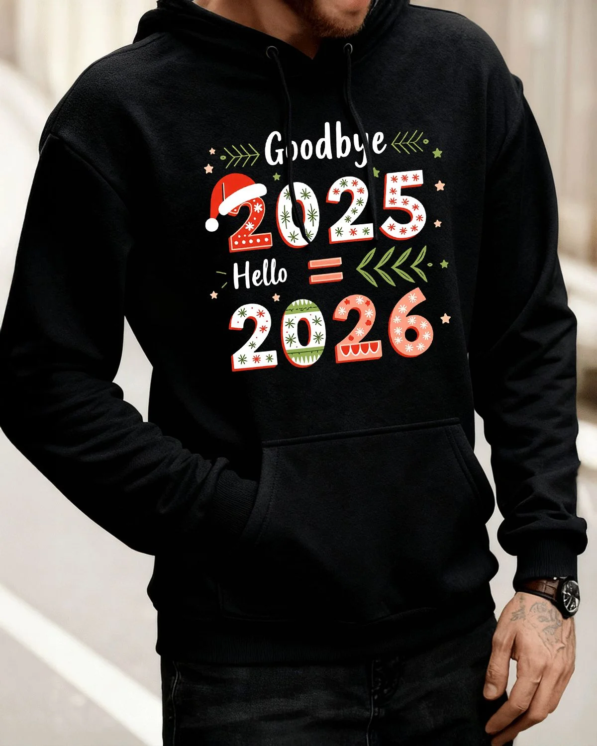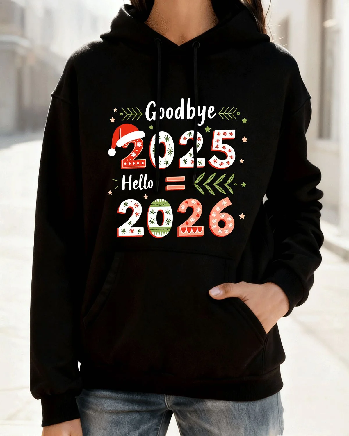 Goodbye 2025 Hello 2026 New Year Cozy Graphic Hoodie for Men and Women - Casual Retro, Long Sleeve, Soft Fabric, Comfortable Fit