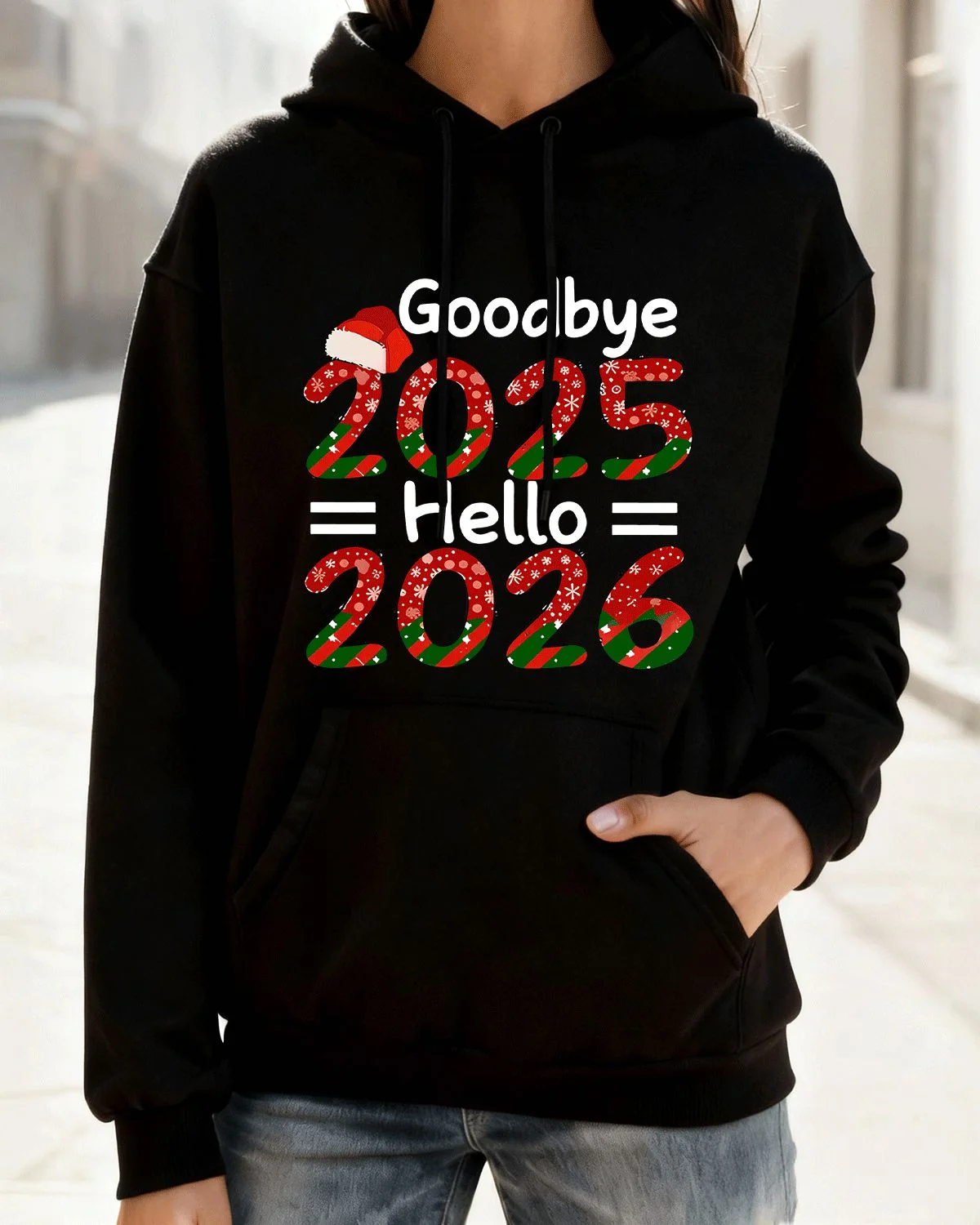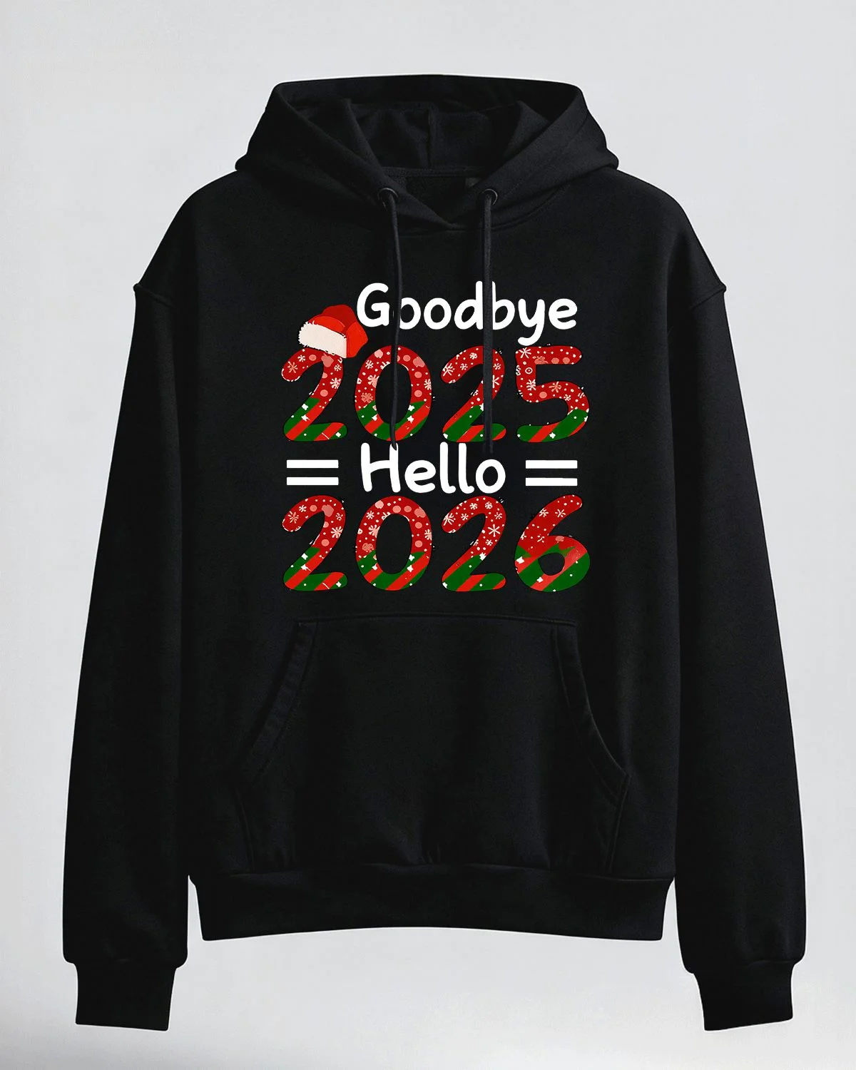 Goodbye 2025 Hello 2026 New Year Cozy Graphic Hoodie for Men and Women - Casual Graphic, Long Sleeve, Soft Fabric, Comfortable Fit