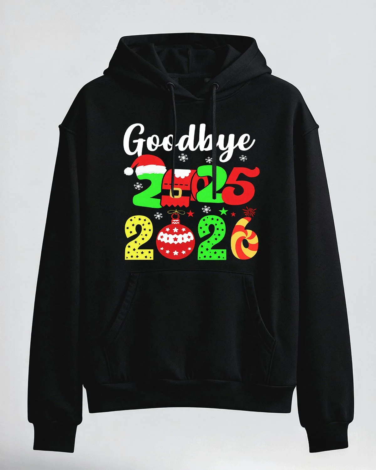 Goodbye 2025 Hello 2026 New Year Festive Design Cozy Graphic Hoodie for Men and Women - Casual Retro, Long Sleeve, Soft Fabric, Comfortable Fit