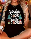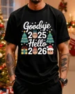 Goodbye 2025 Hello 2026 New Year Festive Design Summer Cotton Graphic T Shirt - Casual Graphic, Short Sleeve, Soft Fabric, Comfortable Fit