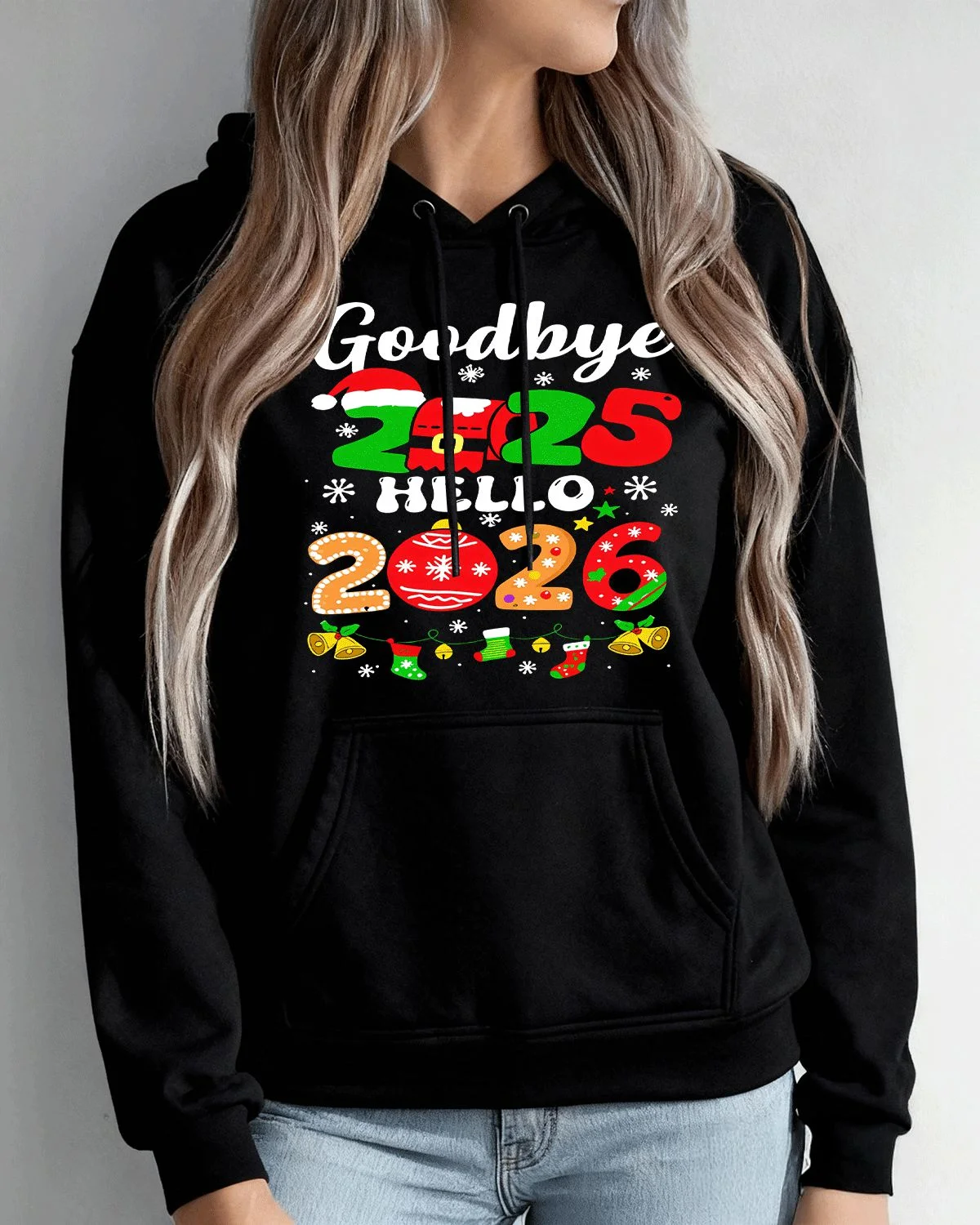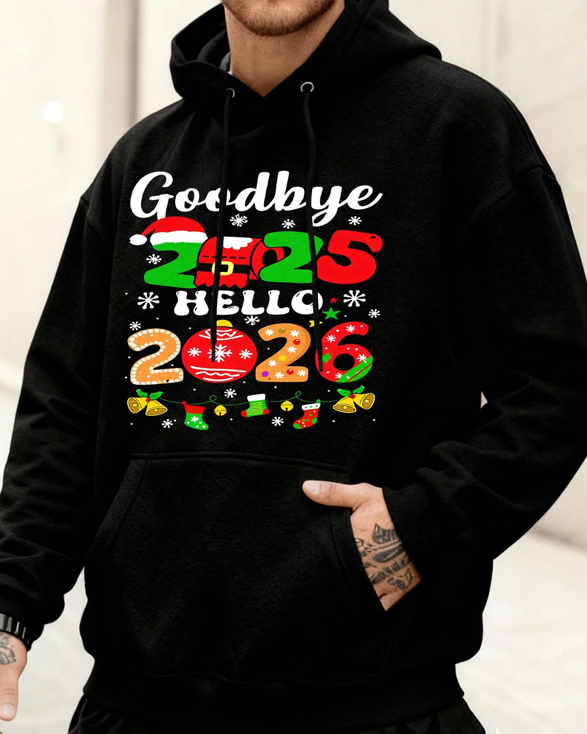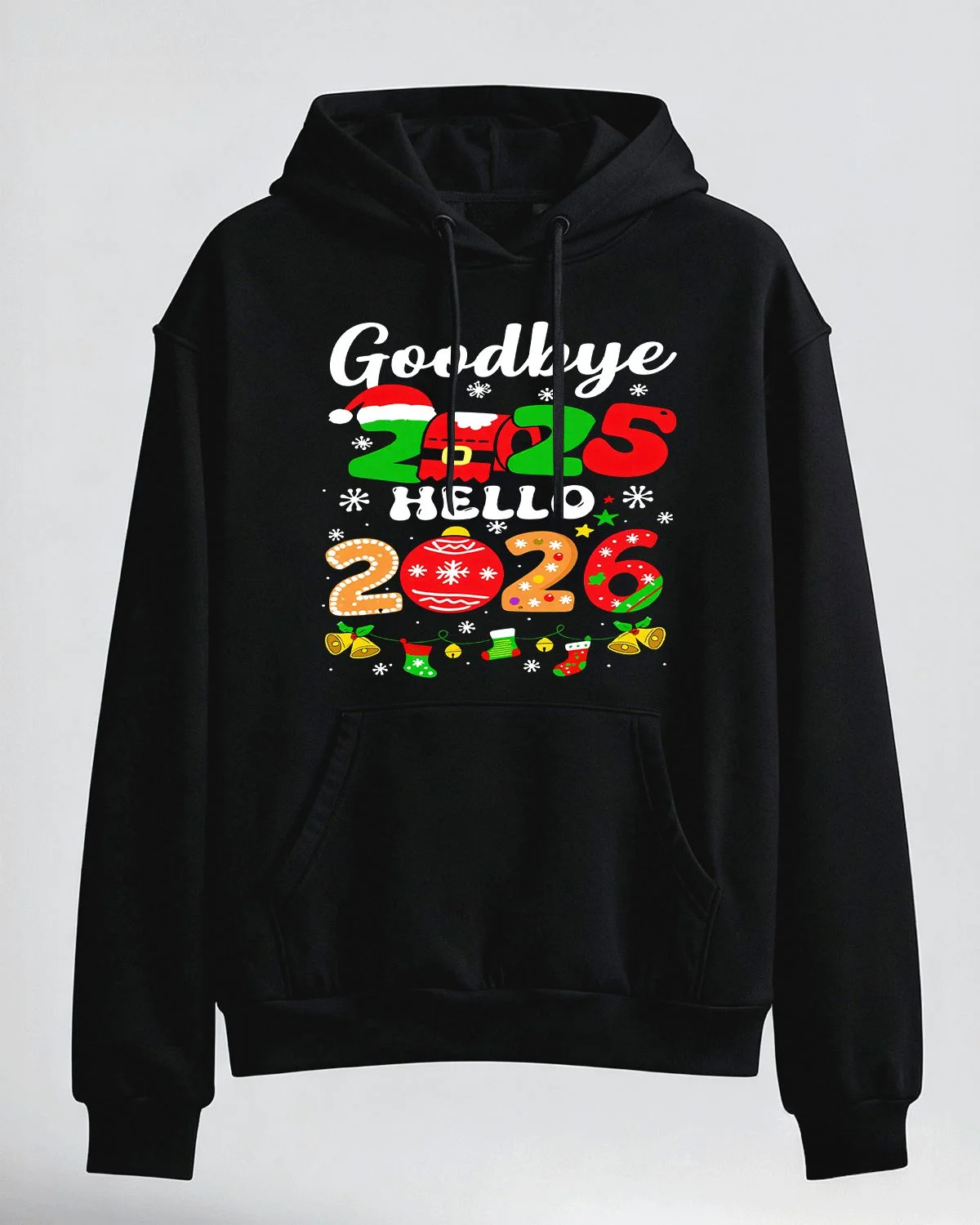 Goodbye 2025 Hello 2026 New Year Festive Snowflakes Cozy Graphic Hoodie for Men and Women - Casual Vintage, Long Sleeve, Soft Fabric, Comfortable Fit