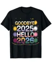 Goodbye 2025 Hello 2026 New Year Fireworks Summer Cotton Graphic T Shirt - Casual Retro, Short Sleeve, Soft Fabric, Comfortable Fit