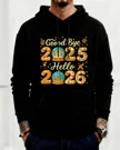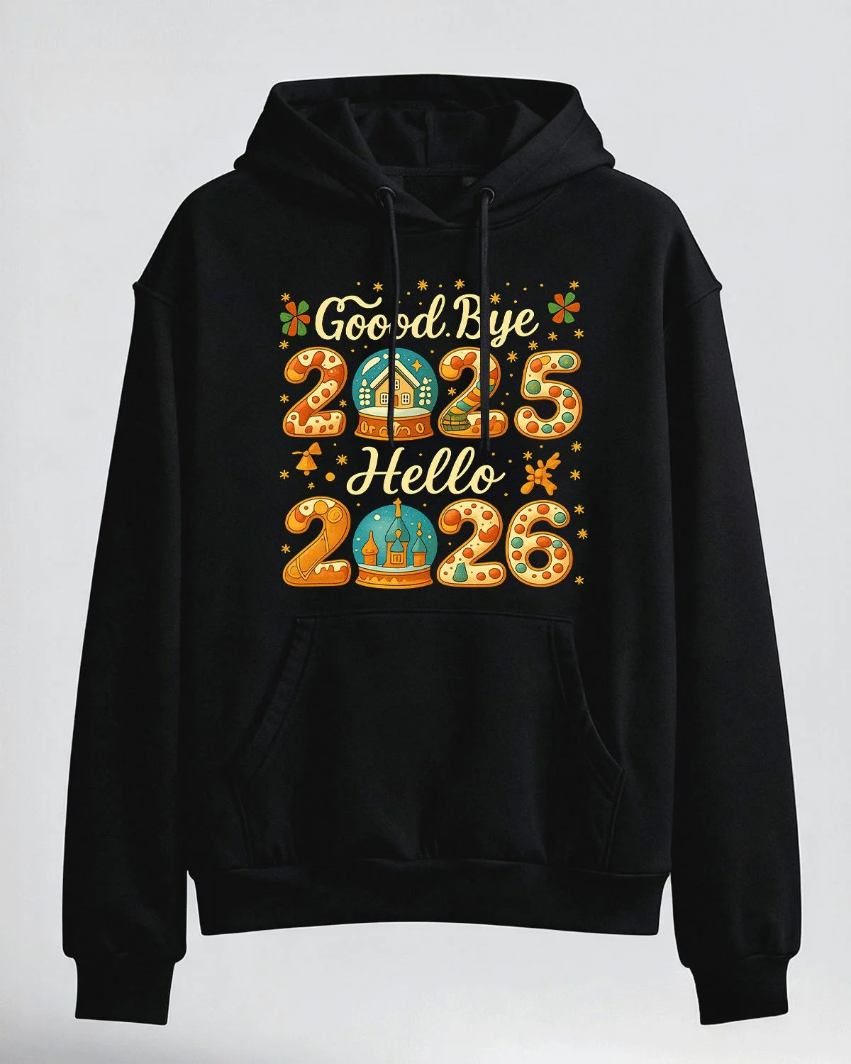 Goodbye 2025 Hello 2026 New Year Gingerbread Snow Globe Cozy Graphic Hoodie for Men and Women - Casual Vintage, Long Sleeve, Soft Fabric, Comfortable Fit