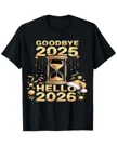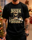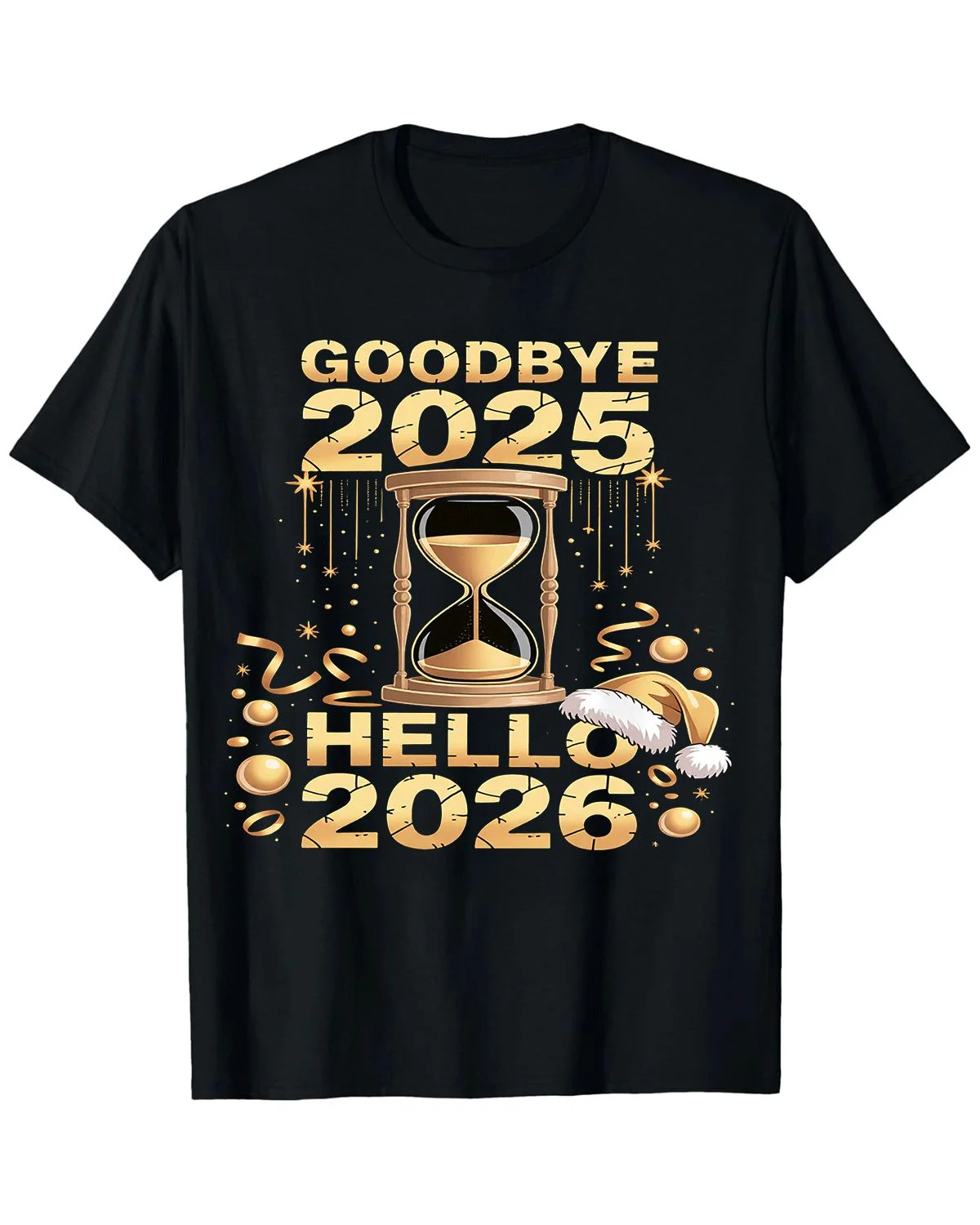 Goodbye 2025 Hello 2026 New Year Hourglass Summer Cotton Graphic T Shirt - Casual Vintage, Short Sleeve, Soft Fabric, Comfortable Fit