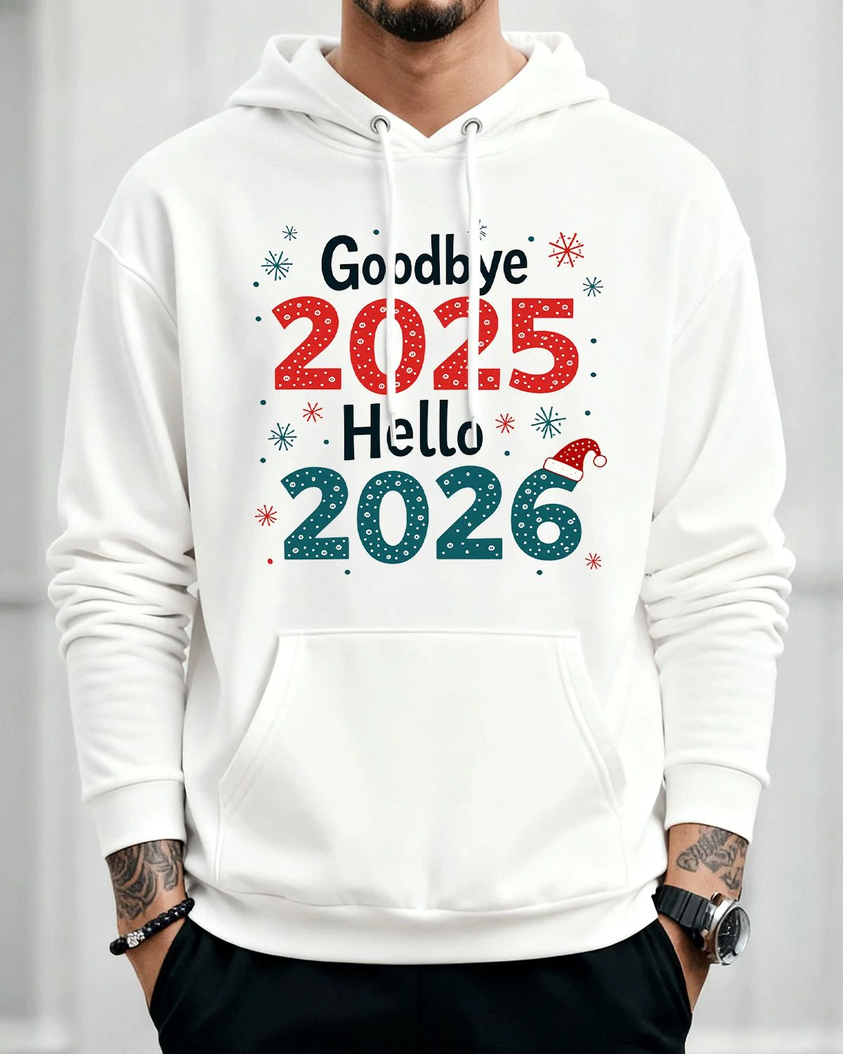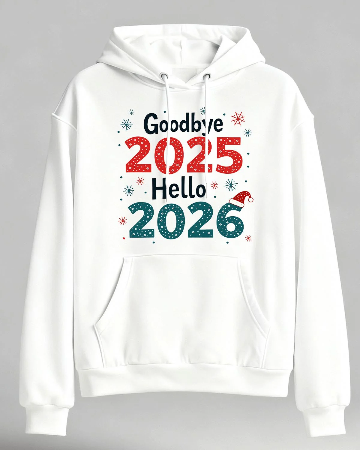 Goodbye 2025 Hello 2026 New Year Snowflakes Cozy Graphic Hoodie for Men and Women - Casual Retro, Long Sleeve, Soft Fabric, Comfortable Fit