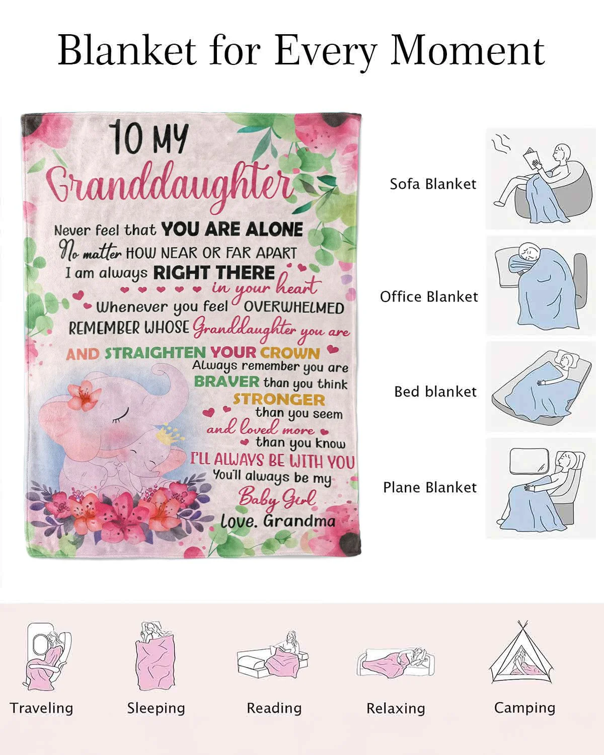 Granddaughter Love and Encouragement Letter Cozy Flannel Blanket-Cute,Classic,Super Soft,Warm,Lightweight,For Couch,Bedroom Use