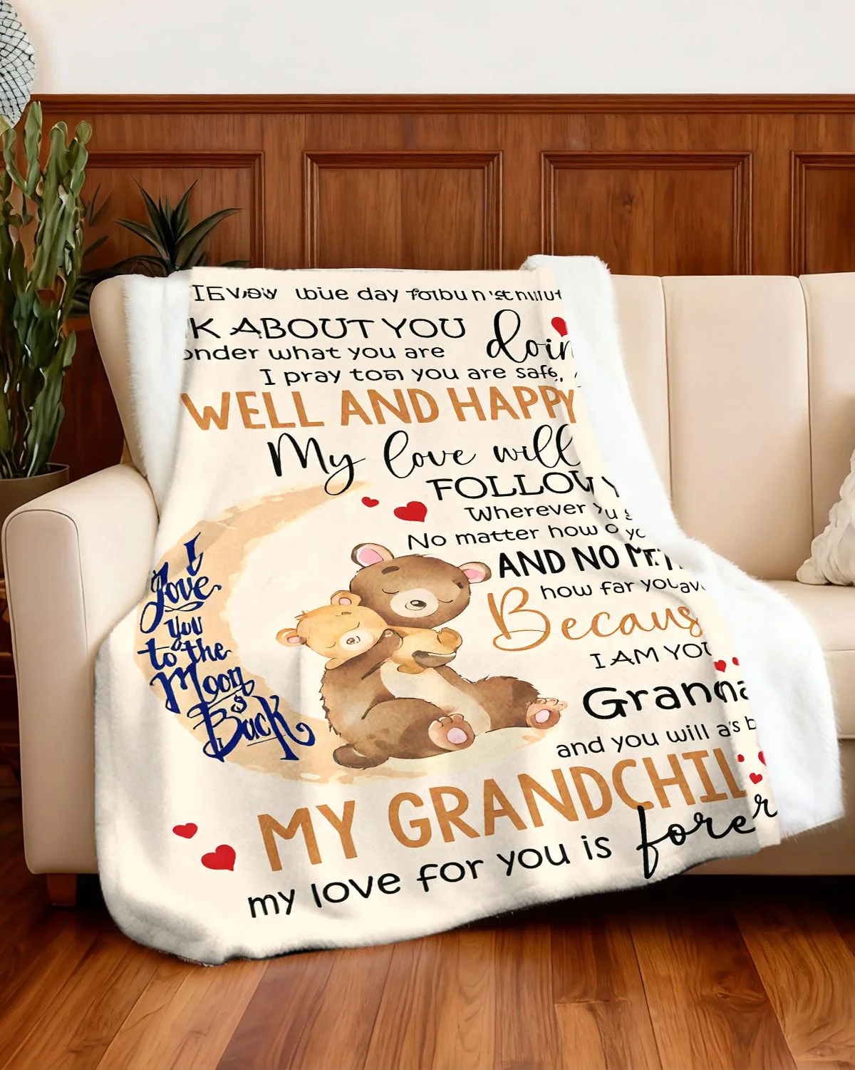 Grandma Love to Grandchild Letter Cozy Flannel Blanket-Cute,Classic,Super Soft,Warm,Lightweight,For Couch,For Bed