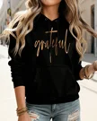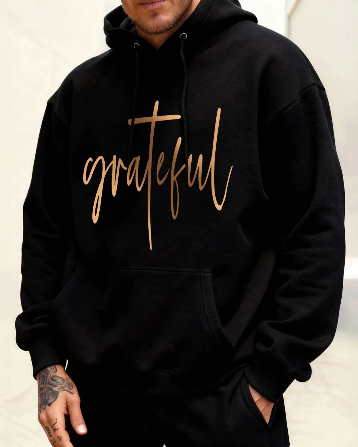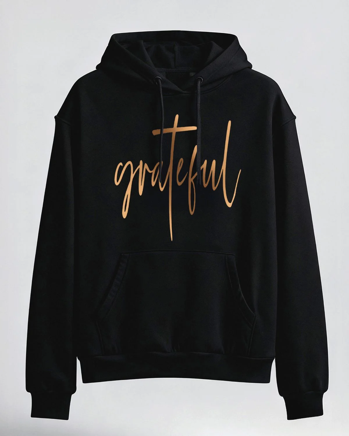 Grateful Handwritten Script Cozy Graphic Hoodie for Men and Women - Casual Chic, Long Sleeve, Soft Fabric, Comfortable Fit