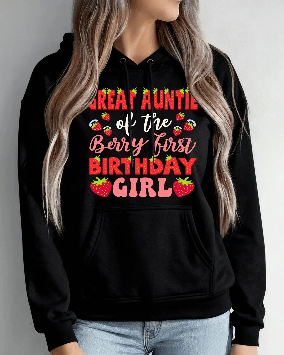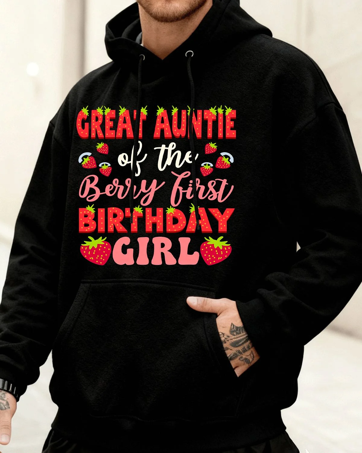 Great Auntie Berry First Birthday Girl Cozy Graphic Hoodie for Men and Women - Casual Funny, Long Sleeve, Soft Fabric, Comfortable Fit