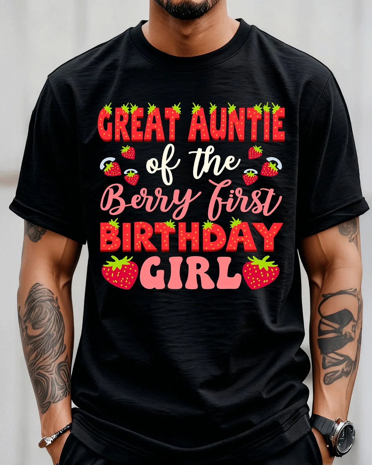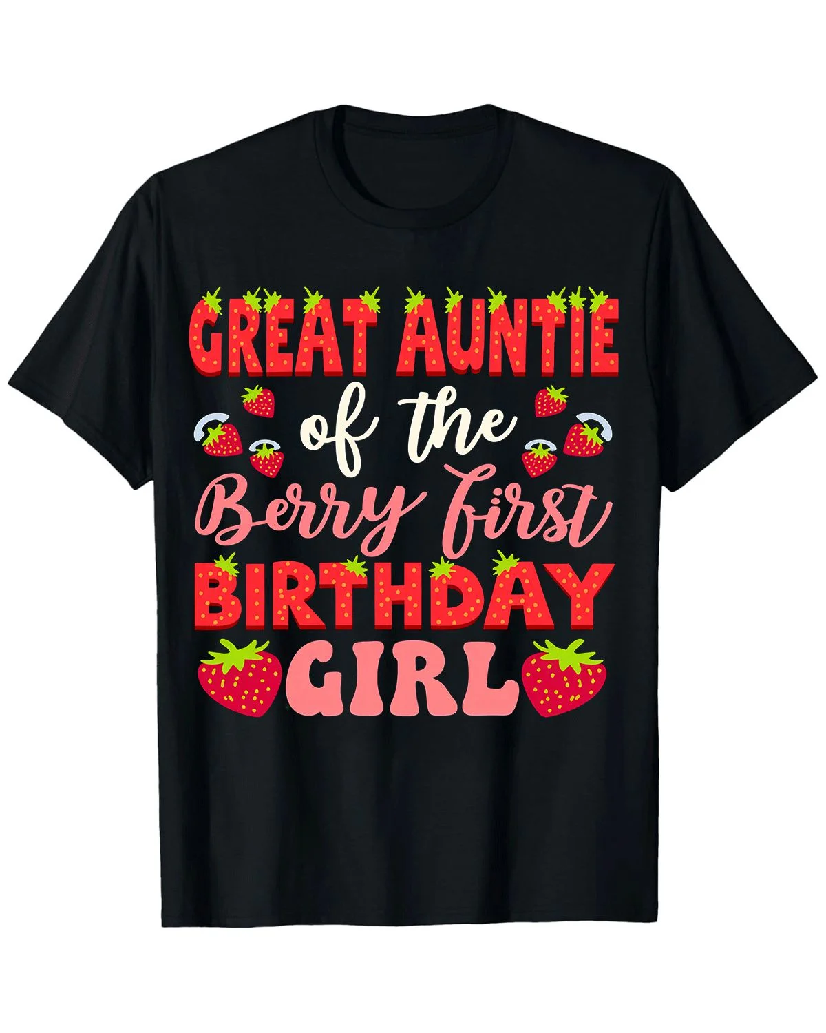 Great Auntie Berry First Birthday Girl Summer Cotton Graphic T Shirt - Casual Funny, Short Sleeve, Soft Fabric, Comfortable Fit