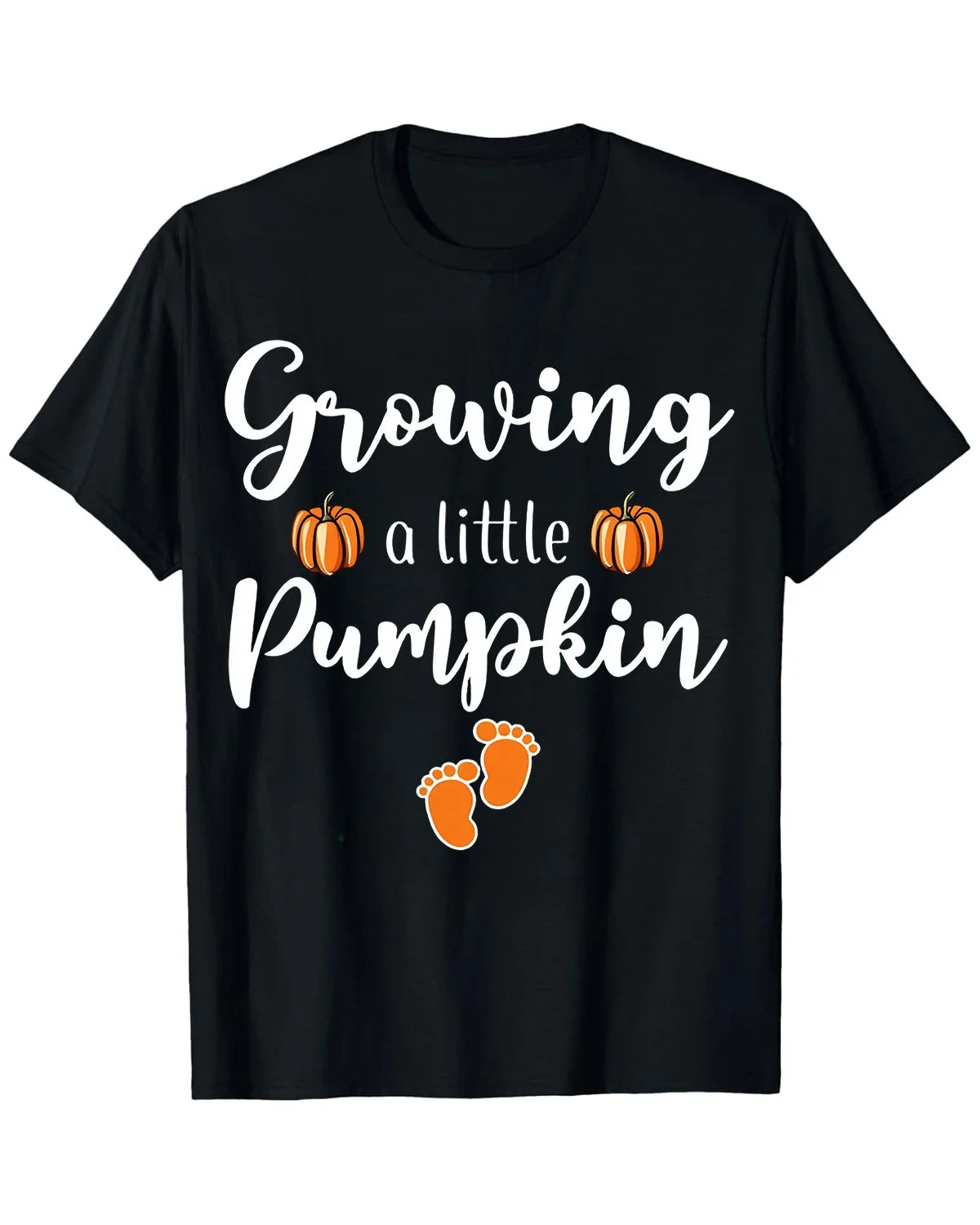 Growing a Little Pumpkin Summer Cotton Graphic T Shirt-Casual Vintage,Short Sleeve,Soft Fabric,Comfortable Fit