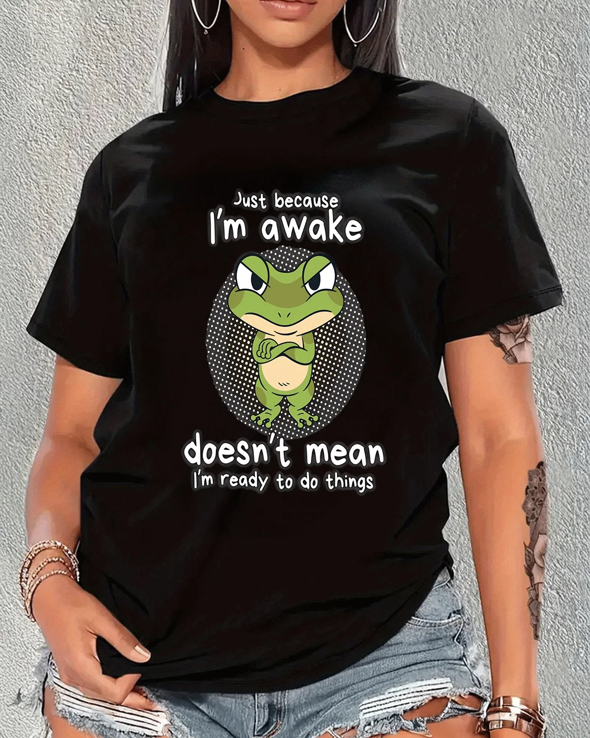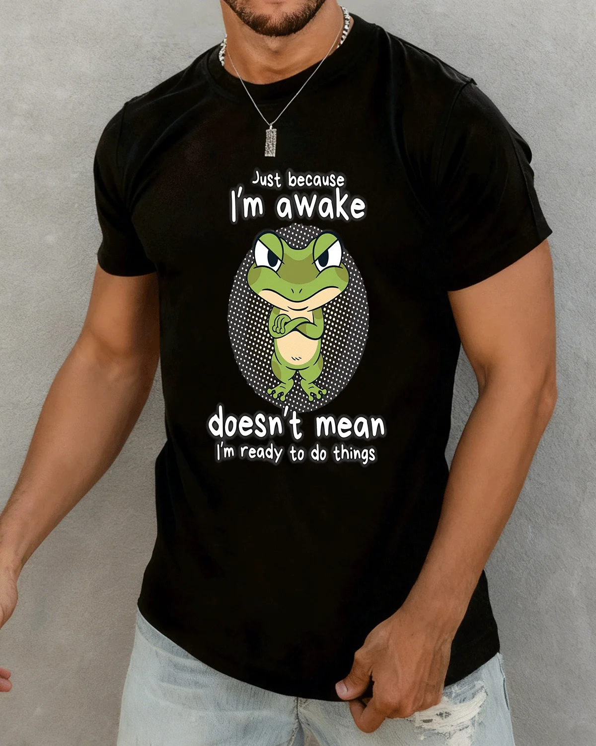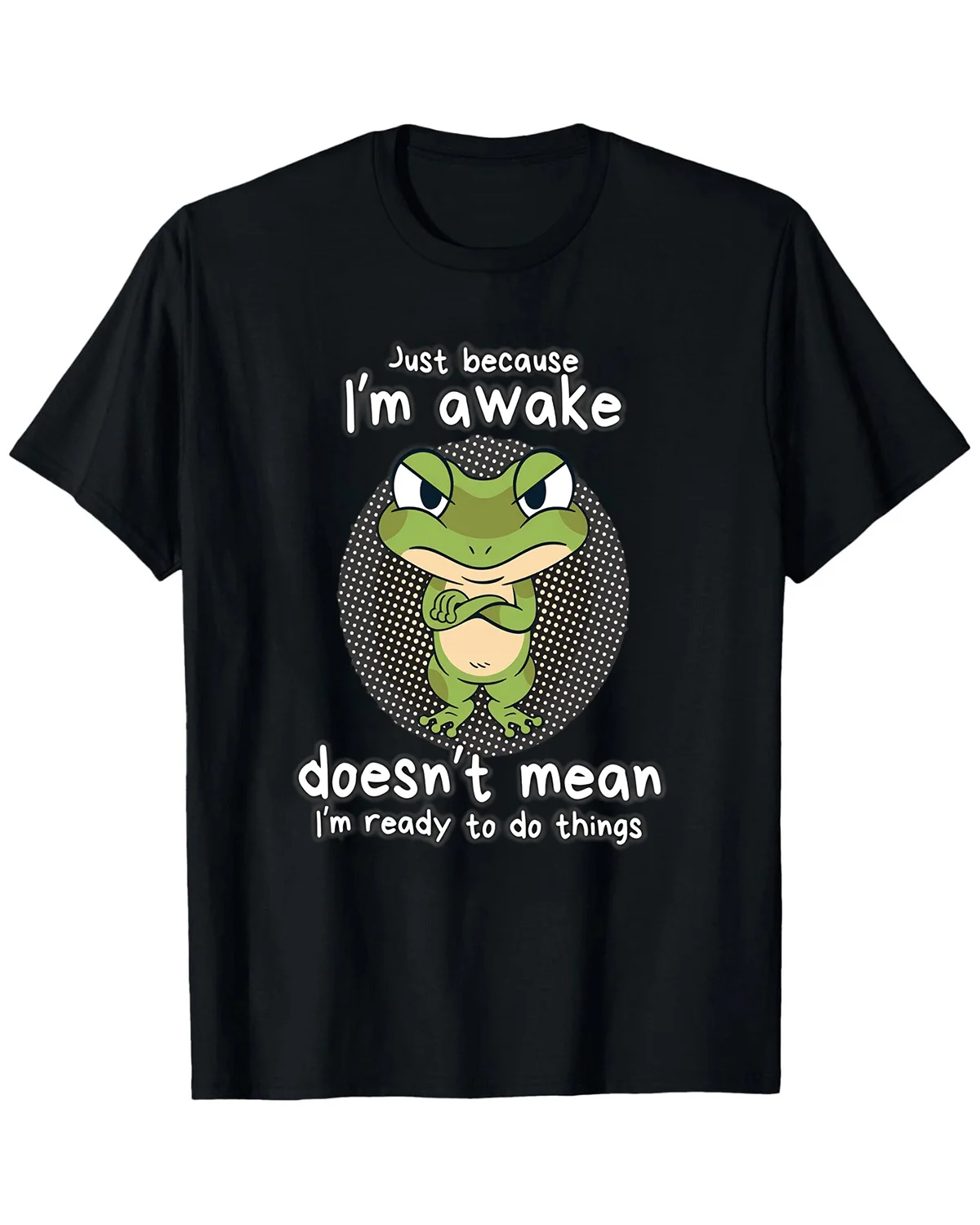 Grumpy Frog Just Because I'm Awake Summer Cotton Graphic T Shirt-Casual Funny,Short Sleeve,Soft Fabric,Comfortable Fit