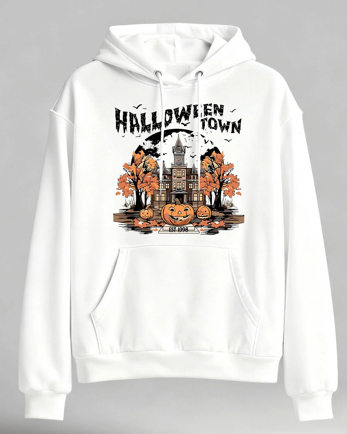 Halloween Town Haunted Mansion EST 1998 Summer Cozy Graphic Hoodie - Vintage Retro, Long Sleeve, Soft Fabric, Comfortable Fit