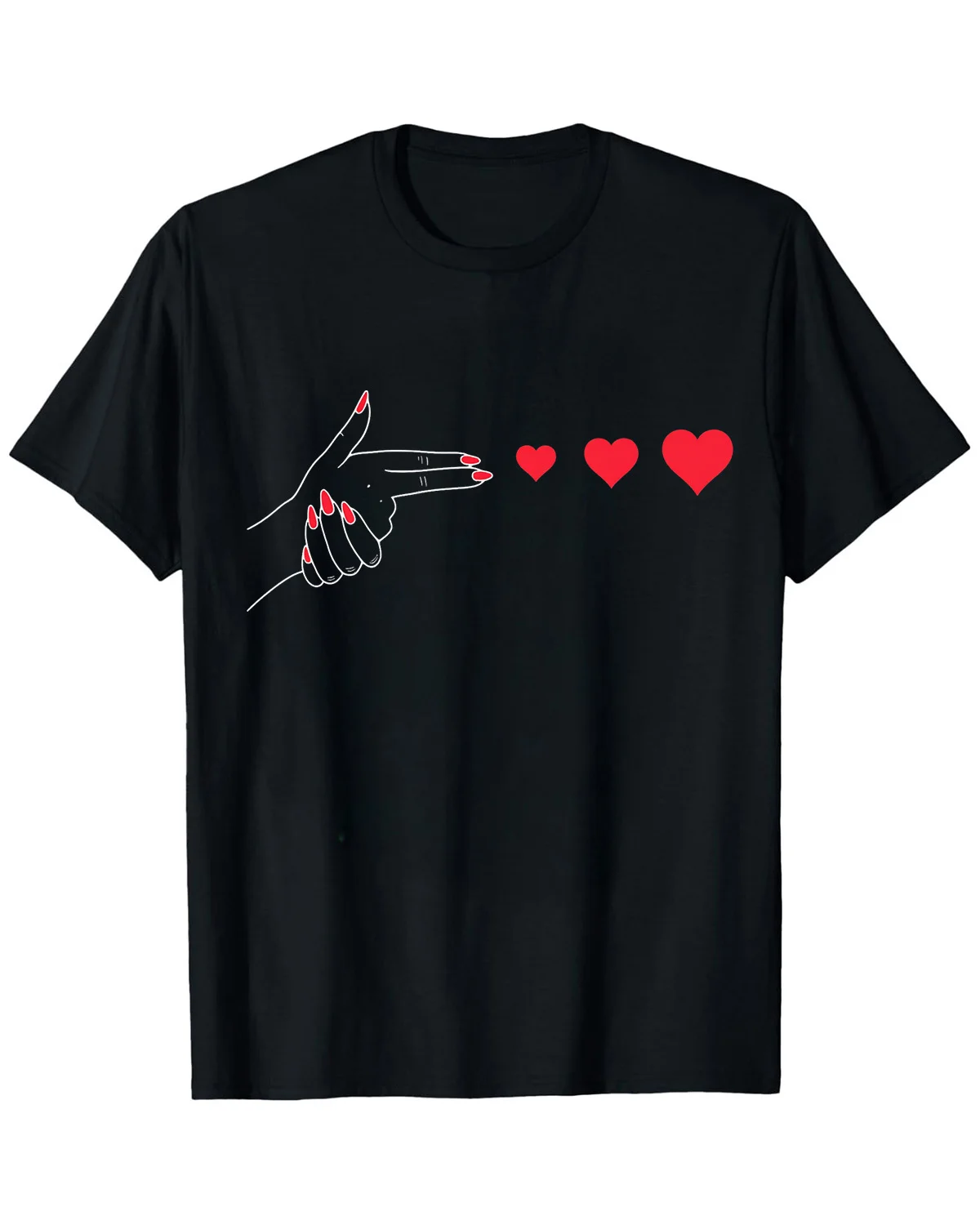 Hand Gesture Shooting Hearts Summer Cotton Graphic T Shirt-Casual Artistic,Short Sleeve,Soft Fabric,Comfortable Fit