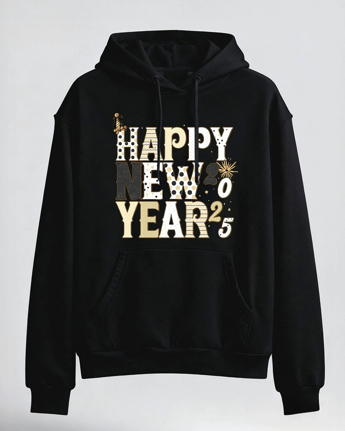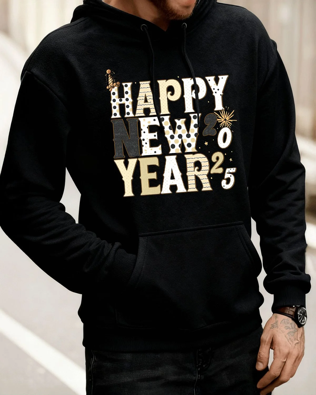 Happy 2025 New Year Glitter Polka Dot Cozy Graphic Hoodie for Men and Women - Casual Vintage, Long Sleeve, Soft Fabric, Comfortable Fit