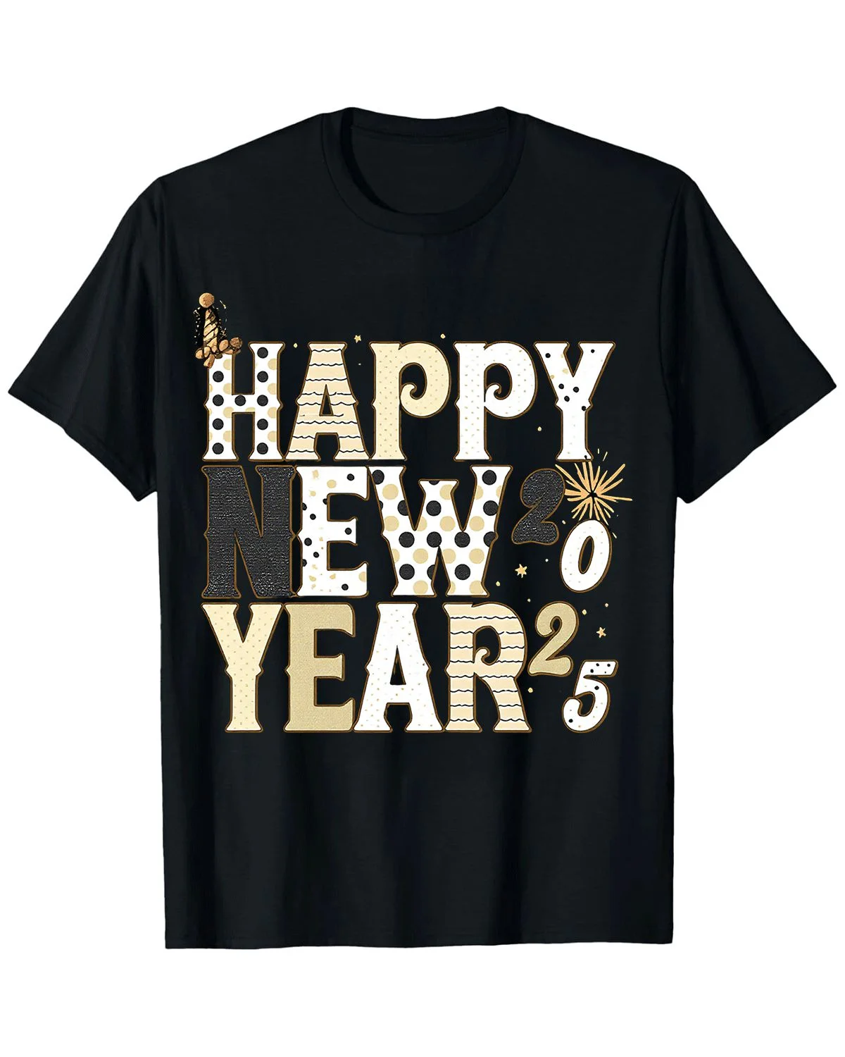 Happy 2025 New Year Glitter Polka Dot Summer Cotton Graphic T Shirt - Casual Vintage, Short Sleeve, Soft Fabric, Comfortable Fit