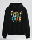 Happy 2026 New Year Champagne and Clock Cozy Graphic Hoodie for Men and Women - Casual Vintage, Long Sleeve, Soft Fabric, Comfortable Fit
