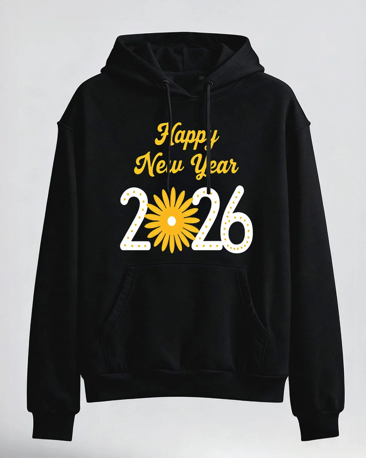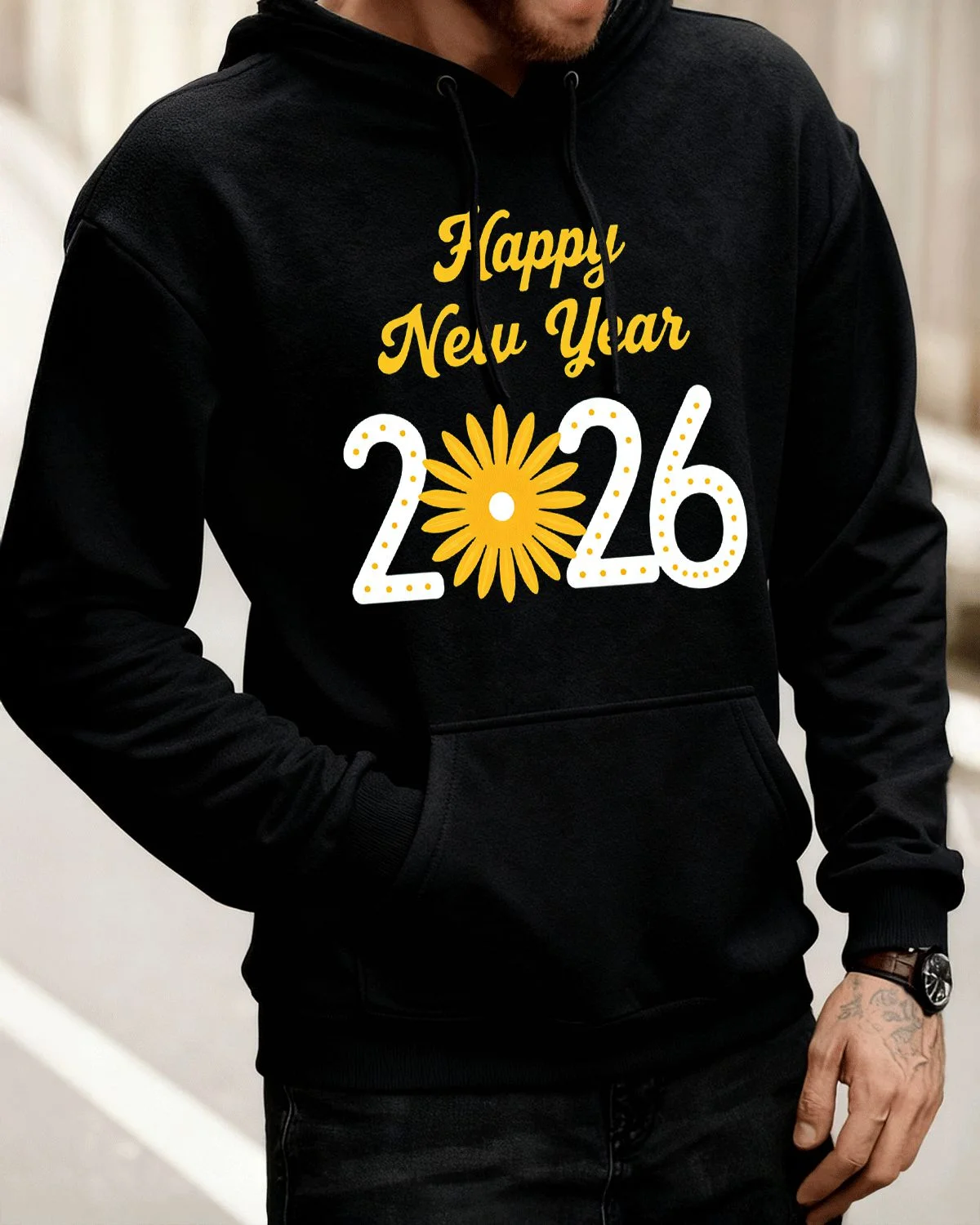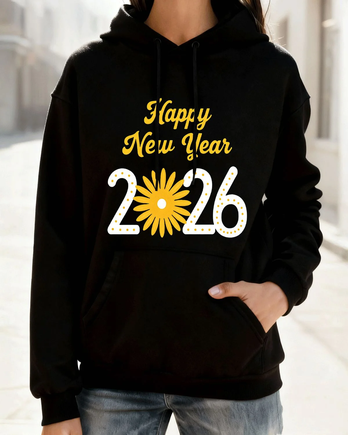 Happy 2026 New Year Daisy Flower Cozy Graphic Hoodie for Men and Women - Casual Vintage, Long Sleeve, Soft Fabric, Comfortable Fit