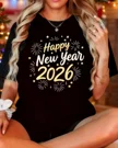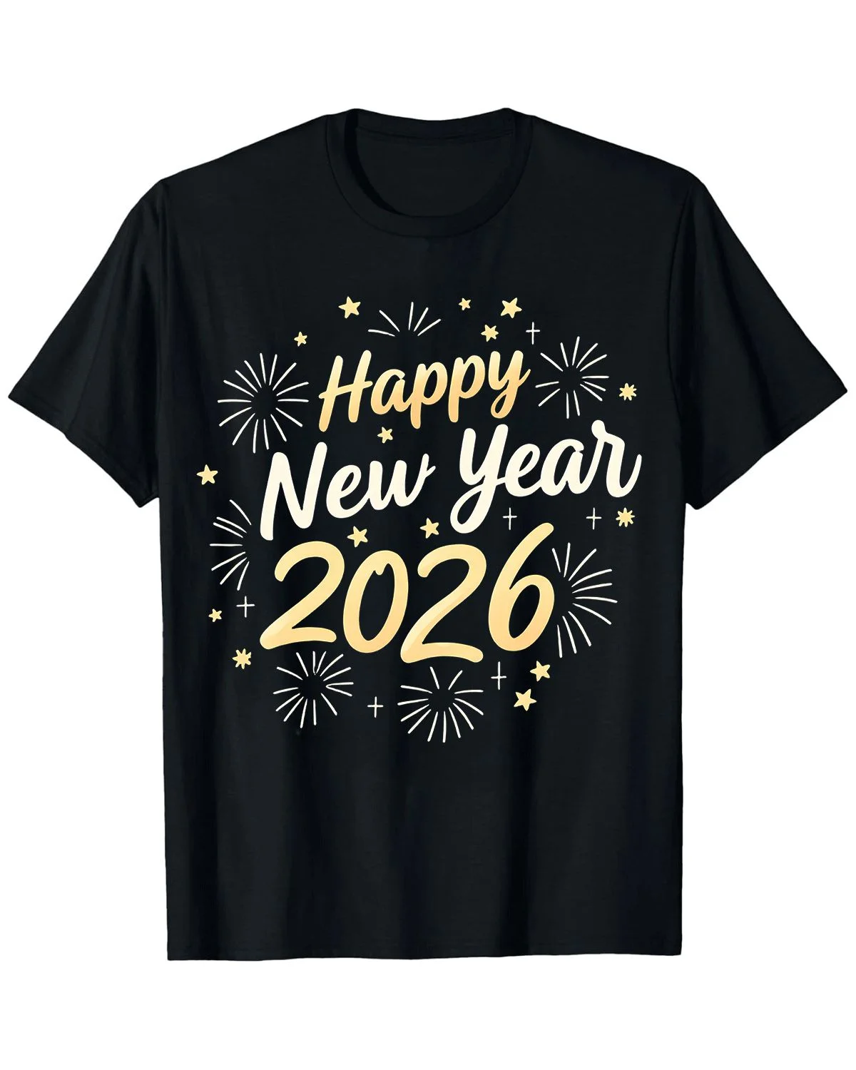 Happy 2026 New Year Fireworks and Stars Summer Cotton Graphic T Shirt - Casual Vintage, Short Sleeve, Soft Fabric, Comfortable Fit