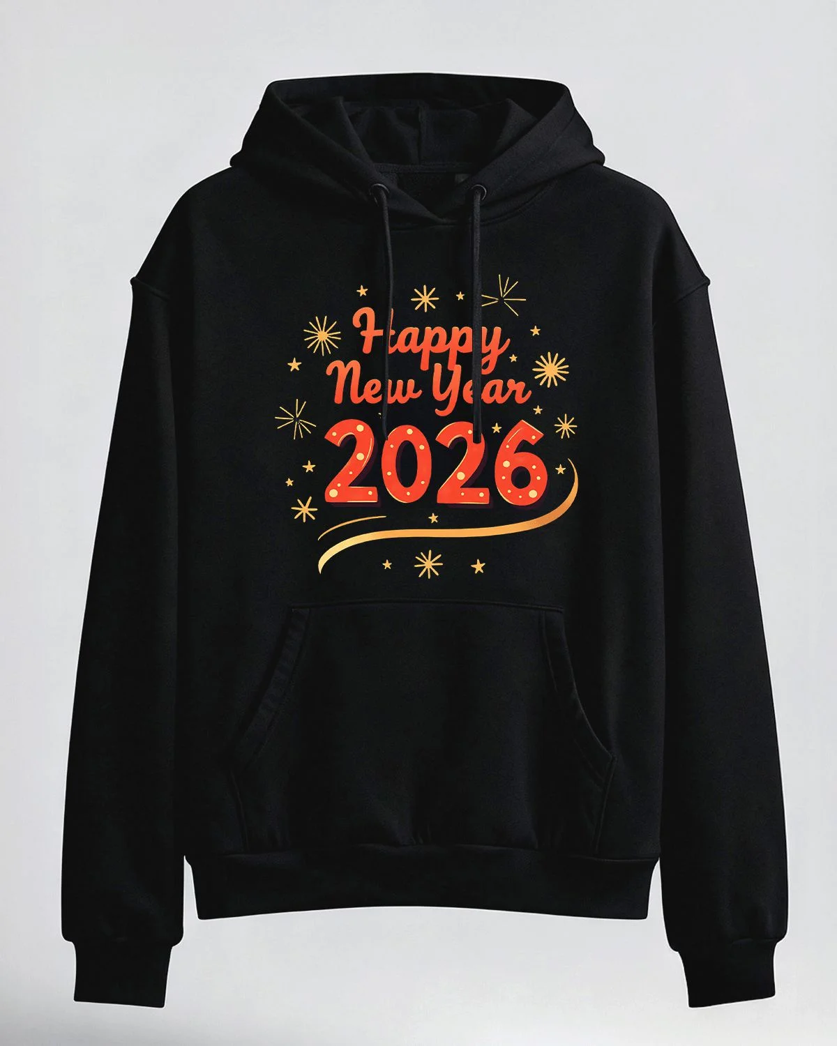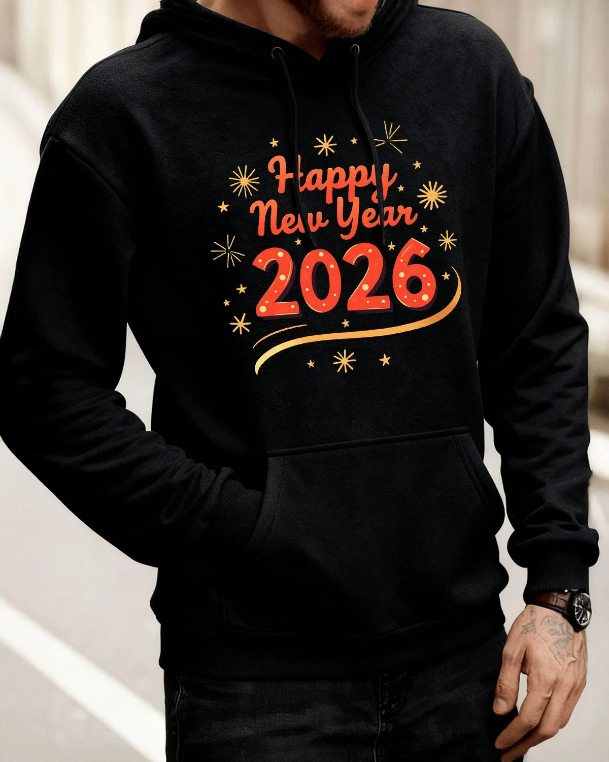Happy 2026 New Year Fireworks Celebration Cozy Graphic Hoodie for Men and Women - Casual Vintage, Long Sleeve, Soft Fabric, Comfortable Fit