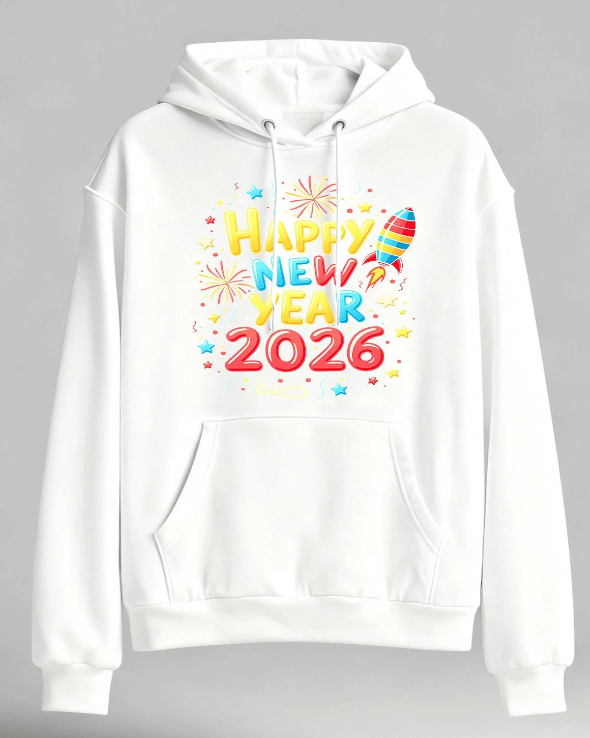 2026 New Year Cruise Ship and Fireworks Cozy Graphic Hoodie for Men and Women - Vintage Artistic, Long Sleeve, Soft Fabric, Comfortable Fit