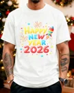 Happy 2026 New Year Fireworks Rocket Summer Cotton Graphic T Shirt - Casual Vintage, Short Sleeve, Soft Fabric, Comfortable Fit