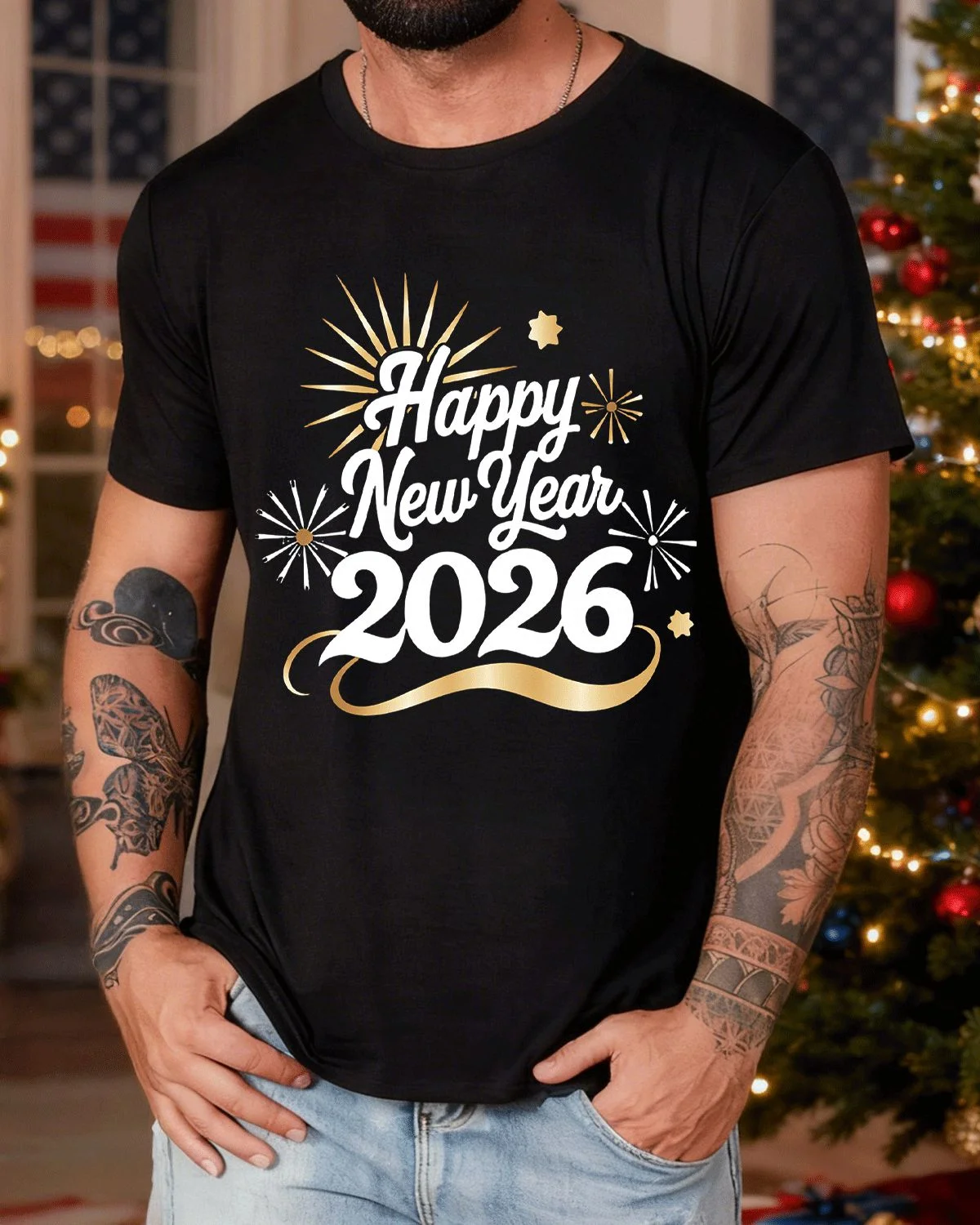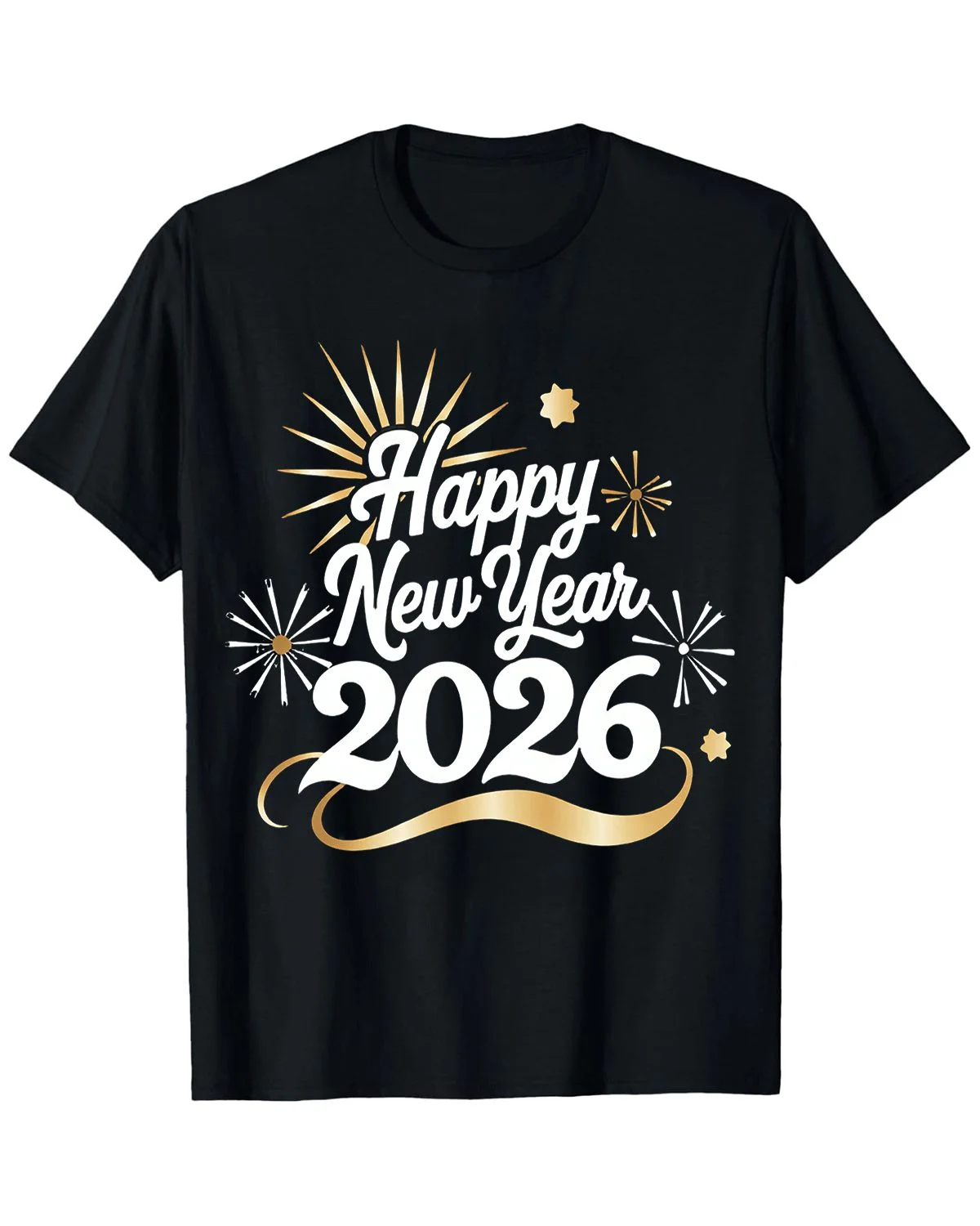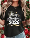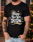 Happy 2026 New Year Fireworks Summer Cotton Graphic T Shirt - Casual Vintage, Short Sleeve, Soft Fabric, Comfortable Fit