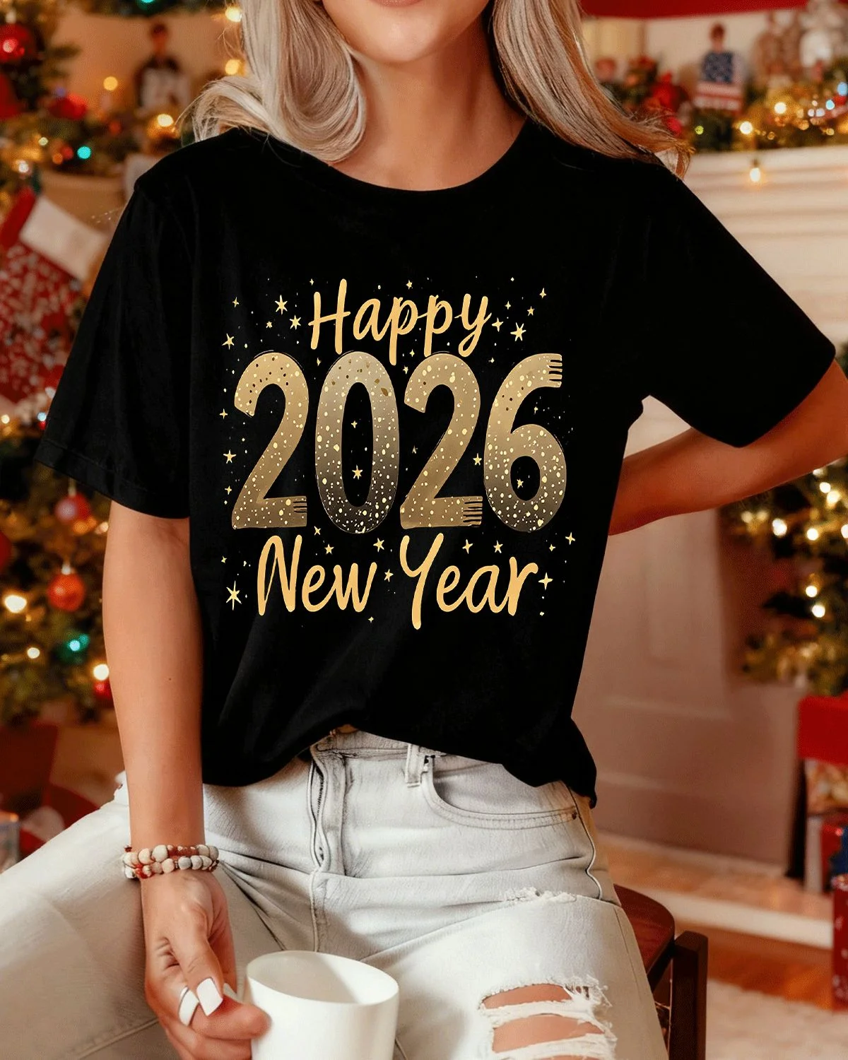 Christmas Chickens and Reindeer in Santa Hats Summer Cotton Graphic T Shirt - Funny Retro, Short Sleeve, Soft Fabric, Comfortable Fit