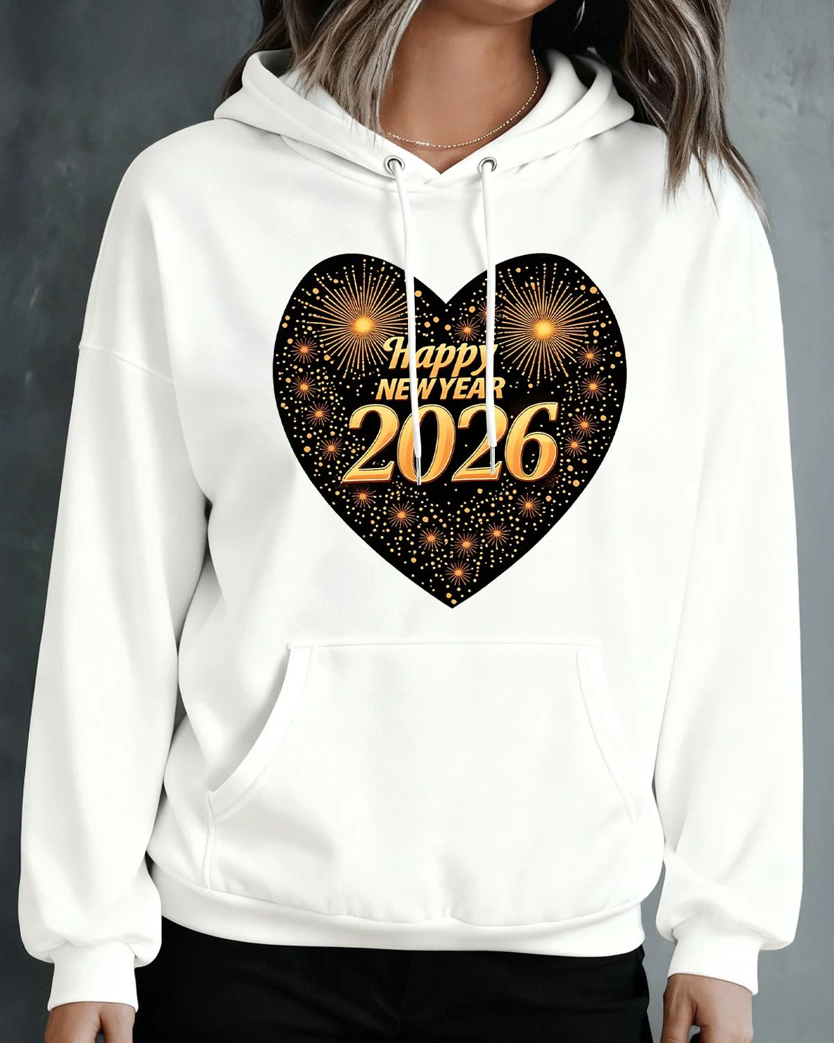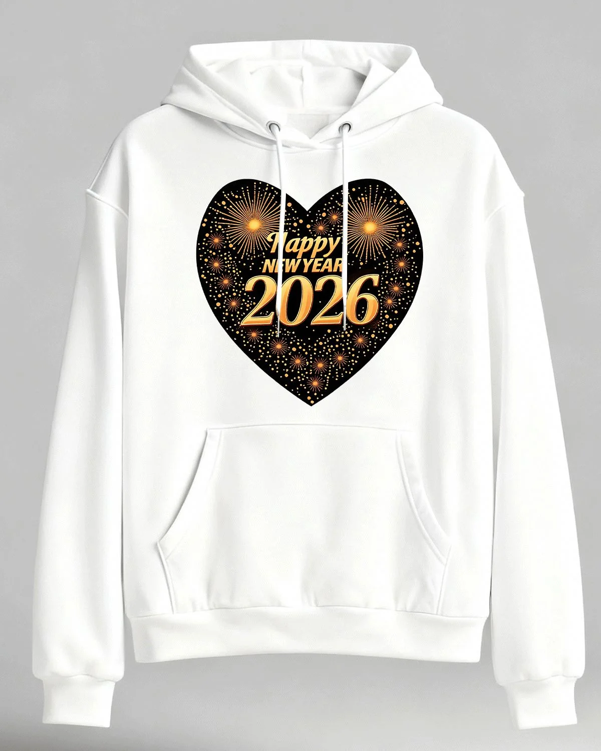 Happy 2026 New Year Heart Fireworks Cozy Graphic Hoodie for Men and Women - Casual Vintage, Long Sleeve, Soft Fabric, Comfortable Fit