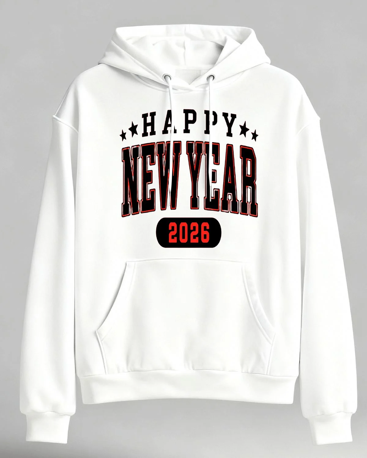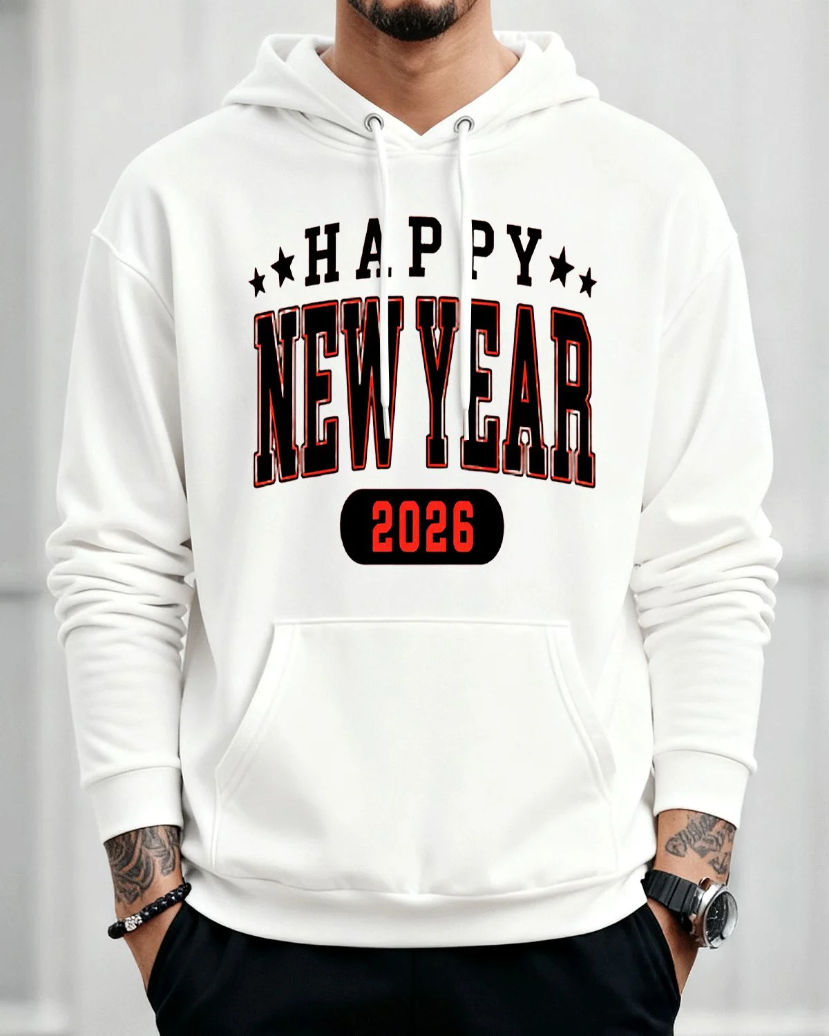 Happy 2026 New Year Stars Cozy Graphic Hoodie for Men and Women - Casual Vintage, Long Sleeve, Soft Fabric, Comfortable Fit
