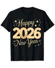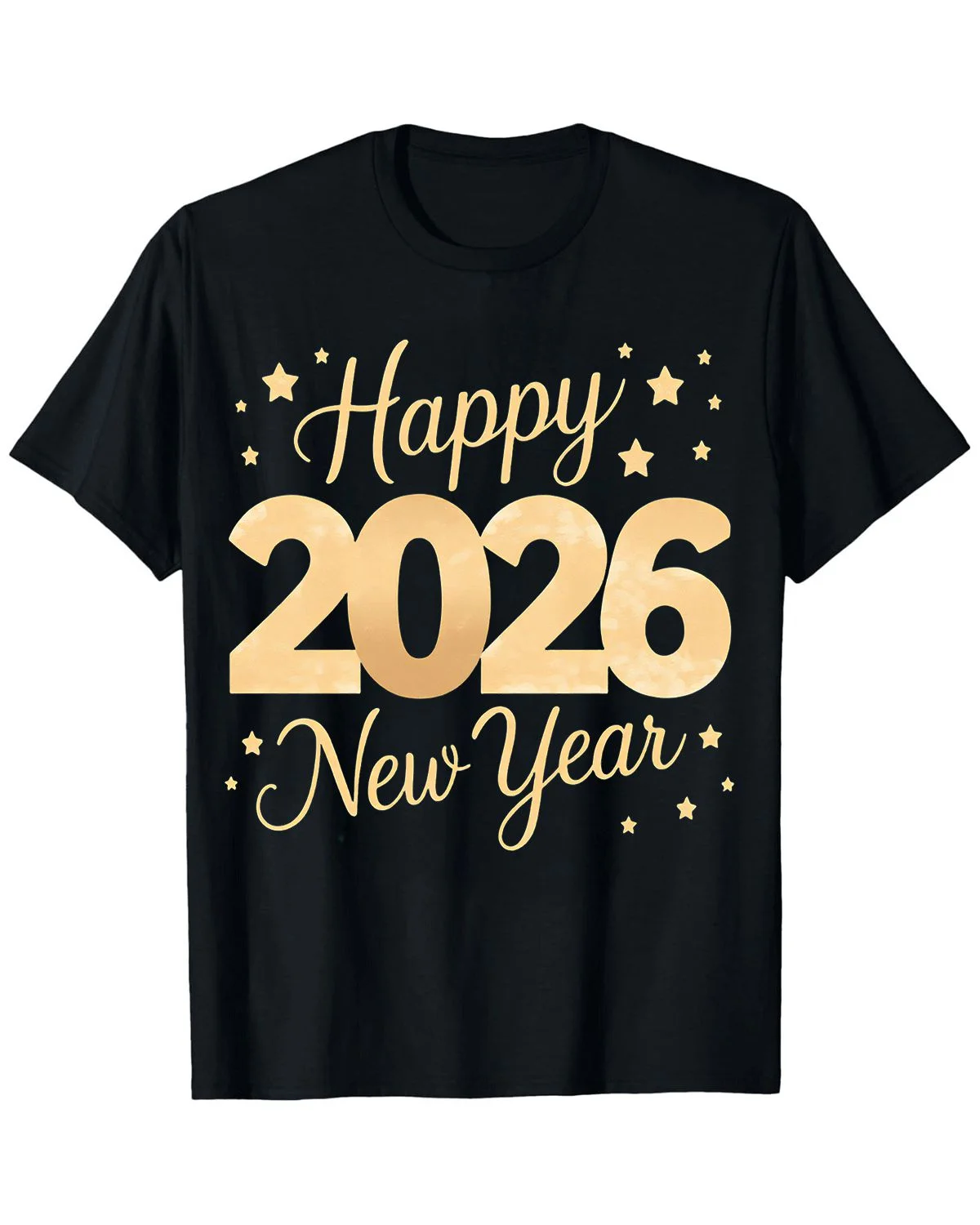 Happy 2026 New Year Stars Summer Cotton Graphic T Shirt - Casual Vintage, Short Sleeve, Soft Fabric, Comfortable Fit