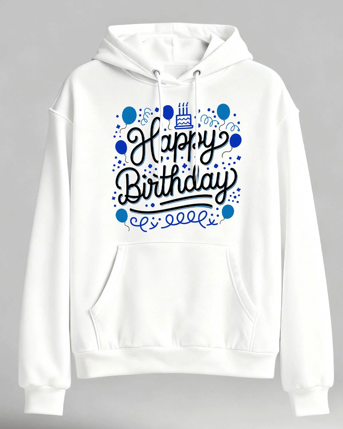 Happy Birthday Balloons and Cake Cozy Graphic Hoodie for Men and Women - Casual Vintage, Long Sleeve, Soft Fabric, Comfortable Fit