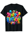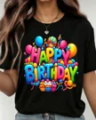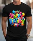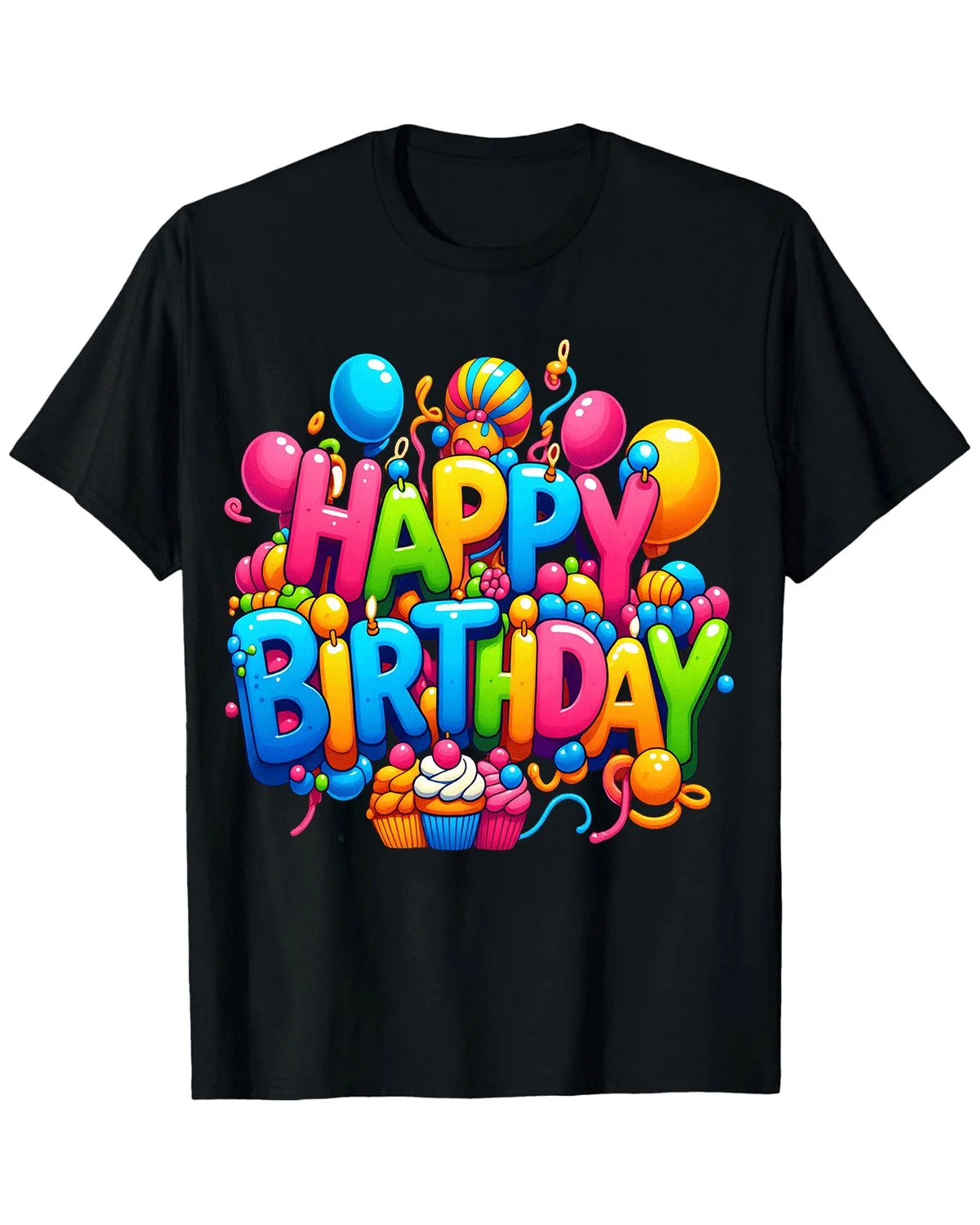 Happy Birthday Balloons and Cupcakes Summer Cotton Graphic T Shirt - Casual Funny, Short Sleeve, Soft Fabric, Comfortable Fit