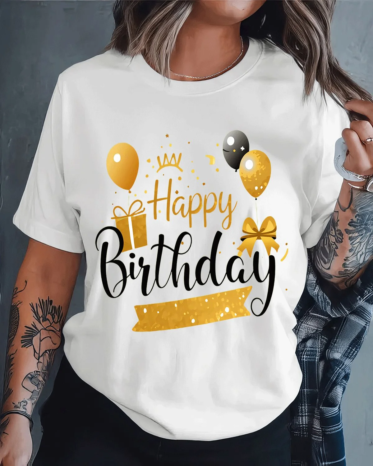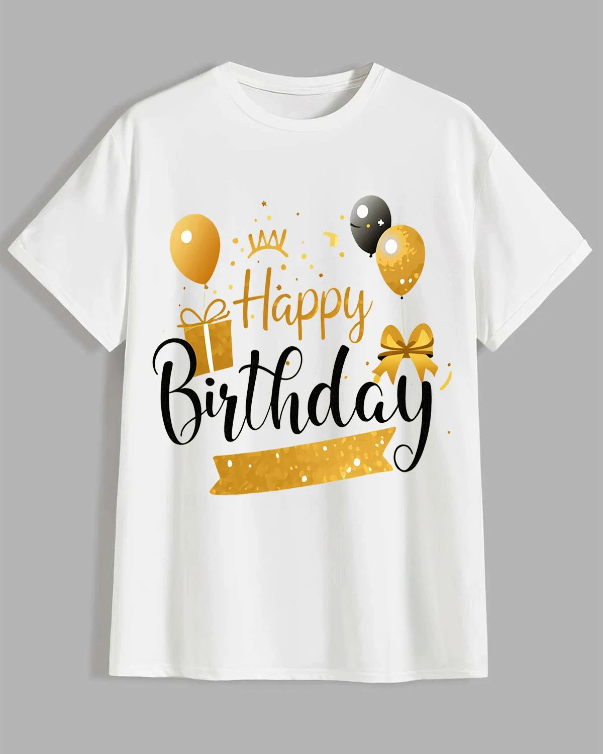 Happy Birthday Balloons and Gift Summer Cotton Graphic T Shirt - Casual Vintage, Short Sleeve, Soft Fabric, Comfortable Fit