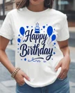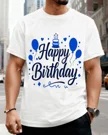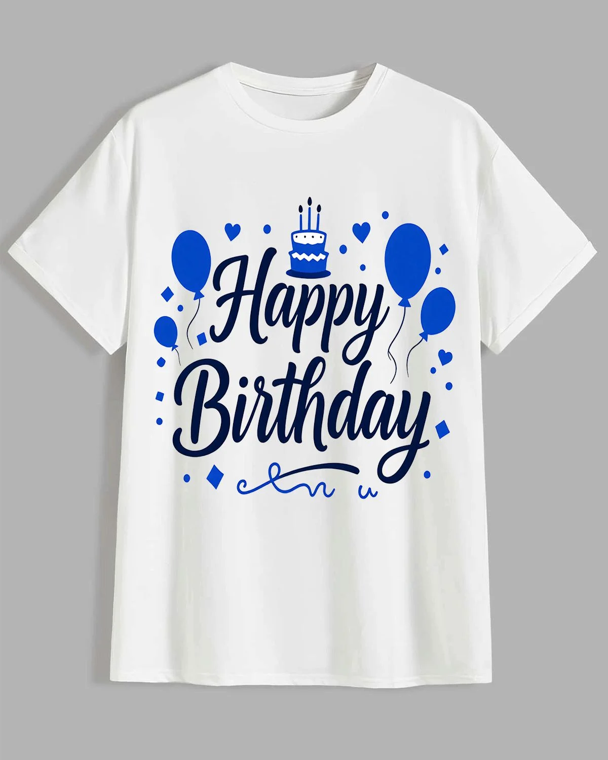 Happy Birthday Cake and Balloons Summer Cotton Graphic T Shirt - Casual Vintage, Short Sleeve, Soft Fabric, Comfortable Fit