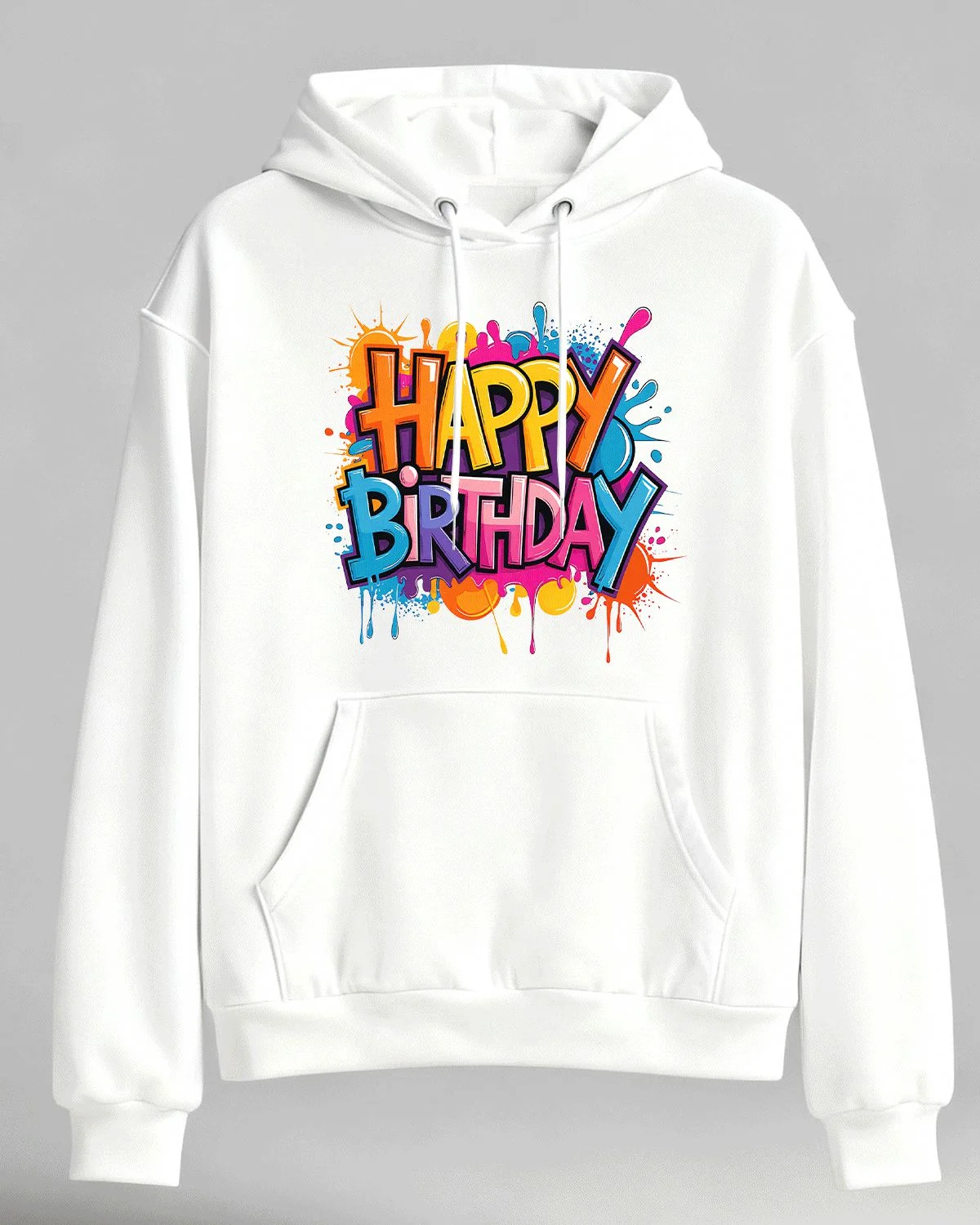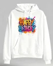 Happy Birthday Color Splash Cozy Graphic Hoodie for Men and Women - Casual Artistic, Long Sleeve, Soft Fabric, Comfortable Fit