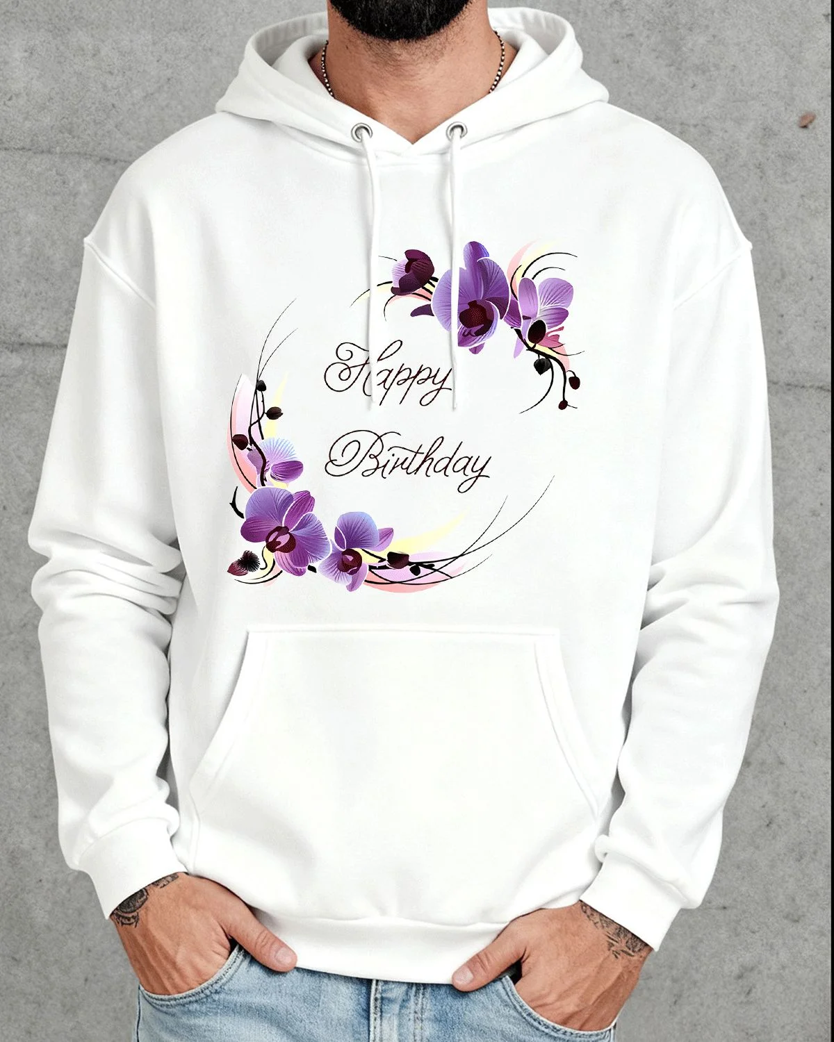 Happy Birthday Wife Cake Illustration Cozy Graphic Hoodie for Men and Women - Casual Vintage, Long Sleeve, Soft Fabric, Comfortable Fit